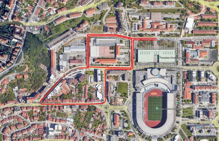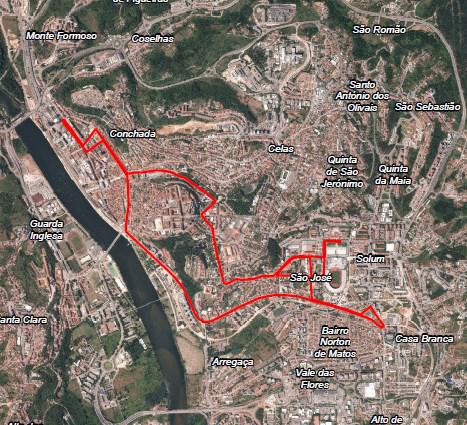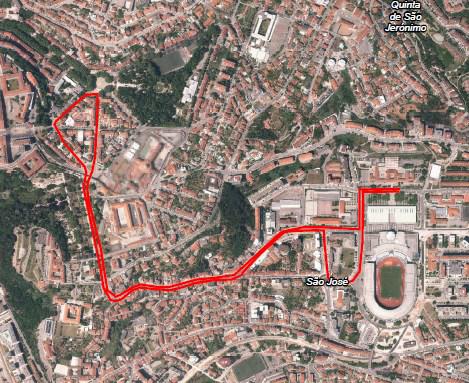 A circulação vai estar também condicionada, a partir das 18h00 e à medida que a prova avance, no traçado da prova mãe. A prova começa e termina na Rua Infanta Dona Maria, passando pela Rua D. Manuel I, Rua do Estádio, Praça São José, Rua da Brotero, Rua General Humberto Delgado, Rua dos Combatentes da Grande Guerra, Rua do Brasil, Rua Tomé Rodrigues Sobral, Rua Monsenhor Augusto Nunes Pereira, Rotunda do Supercor, Rua do Brasil, Avenida Emídio Navarro, Rua Ferreira Borges, Rua Visconde da Luz, Praça 8 de Maio, Rua da Sofia, Rua Manuel Rodrigues, Praça Princesa Cindazunda, Avenida Fernão de Magalhães, Rua João Machado, Rua da Sofia, Rua Olímpio Nicolau Rui Fernandes, Avenida Sá da Bandeira, Rua Oliveira de Matos, Rua Castro Matoso, Alameda Júlio Henriques, Rua dos Combatentes da Grande Guerra, Rua General Humberto Delgado e Rua D. Manuel I.