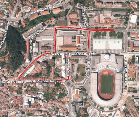 A Praça Heróis do Ultramar e zona envolvente vai encerrar ao trânsito a partir das 14h00 e a Rua do Brasil (desde a rotunda das Bandeiras) e a Avenida Emídio Navarro (sentido Ínsua dos Bentos – Portagem) vão encerrar a partir das 17h00, à semelhança da Rua dos Combatentes, dos Arcos do Jardim, da Avenida Sá da Bandeira (sentido ascendente), da Manutenção, da Rua Olímpio Nicolau Rui Fernandes e da Rua da Sofia, do Arnado e da Avenida Fernão de Magalhães (entre a rotunda do Arnado e a rotunda da Estevão Cabral).