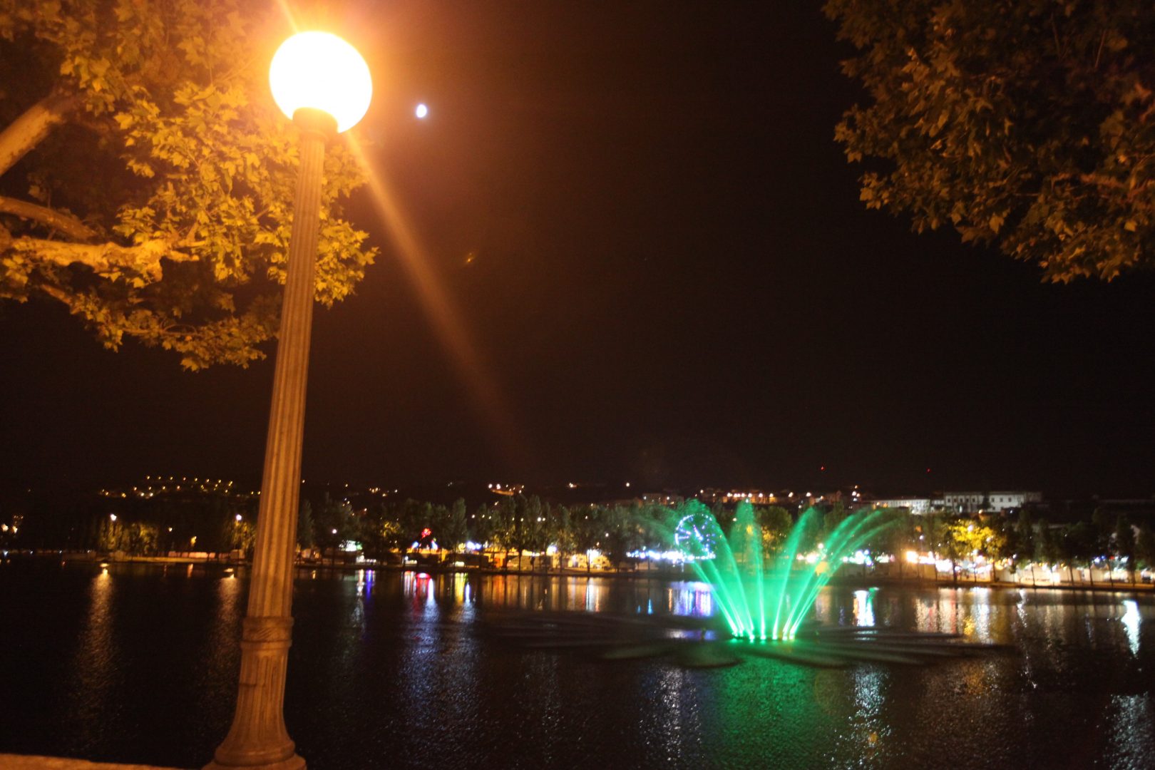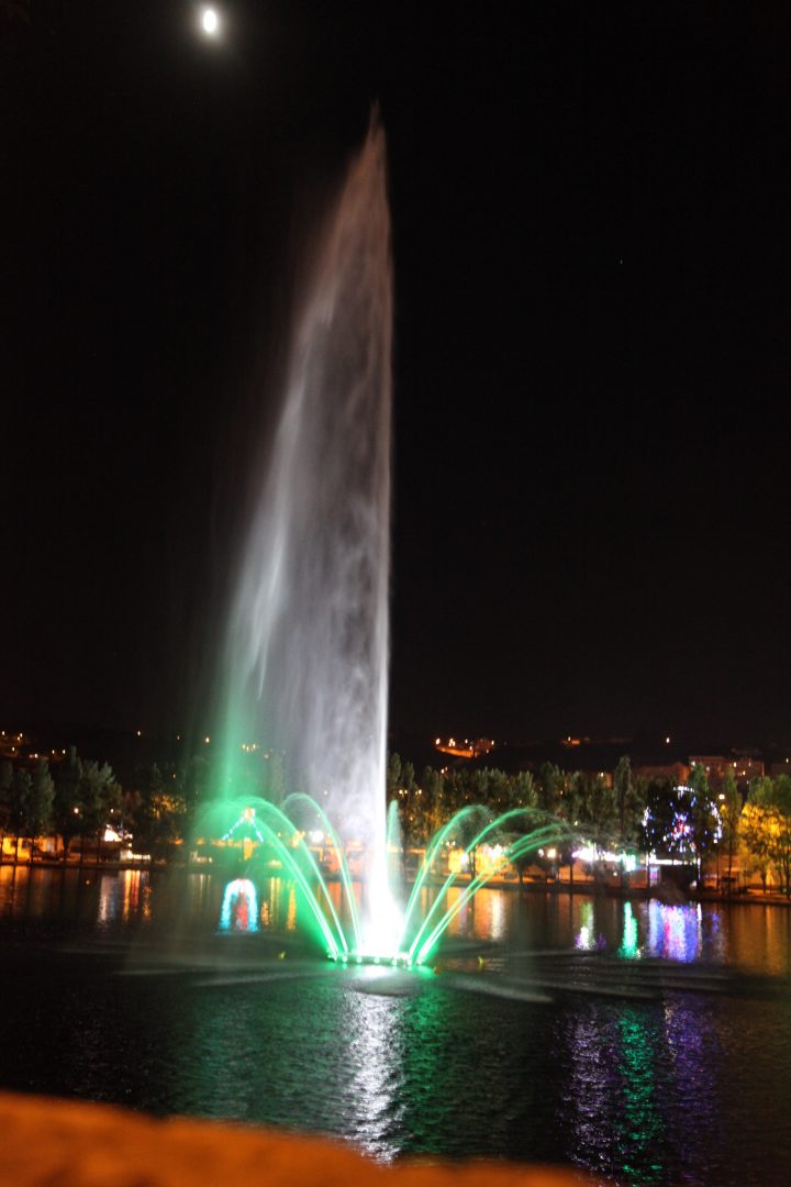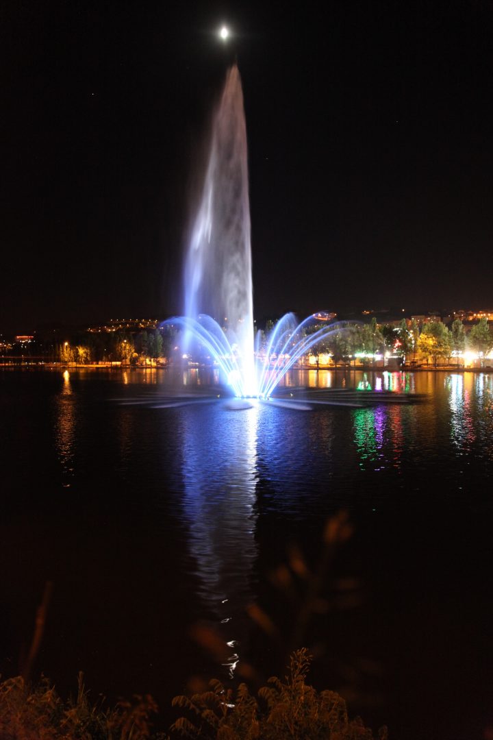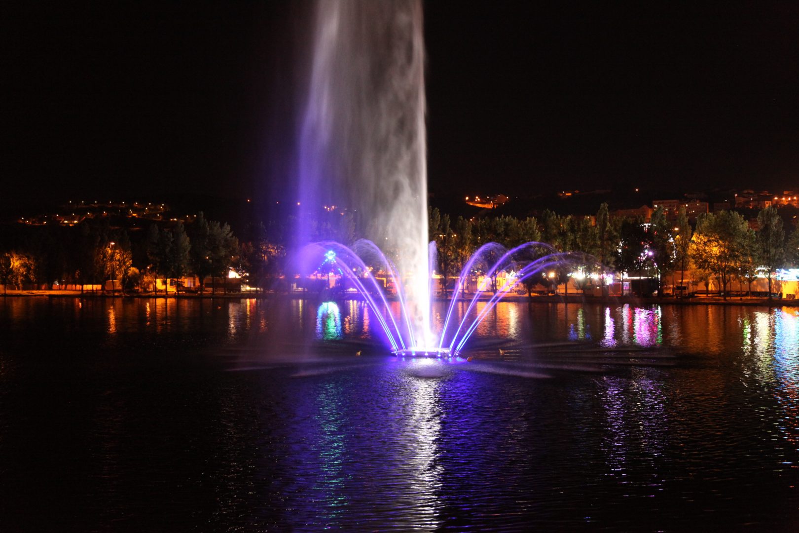 O conjunto cénico completa-se com uma instalação elétrica, composta por projetores LED subaquáticos, totalmente herméticos, que produzem luz branca, vermelha, verde e azul. Os projetores integram um sistema de orientação capaz de dirigir os feixes luminosos, o que resulta num espetacular efeito durante a noite.