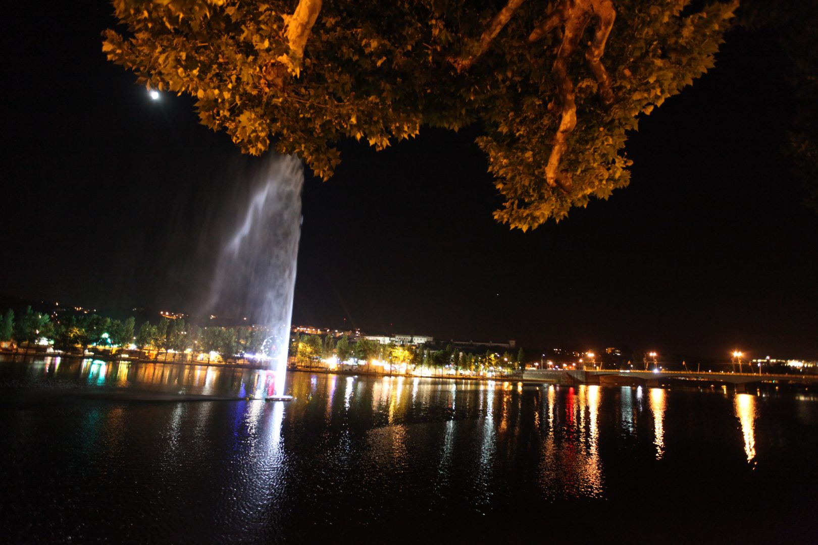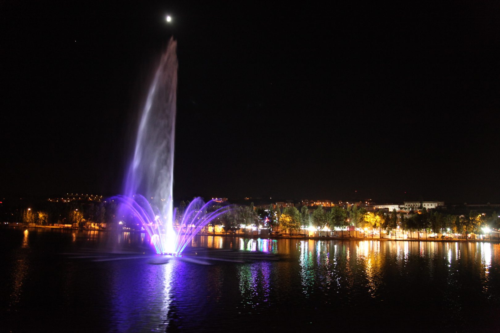 Uma fonte cibernética é uma instalação que proporciona um espetáculo de água, movimento, luz e cor. A estrutura flutuante, ancorada ao fundo do rio, projeta um jato de água que atinge os 40 metros de altura e está rodeado por 16 jatos parabólicos, cada um com 12 metros de alcance. Os jatos são projetados por uma eletrobomba de impulsão, submersa, fabricada em aço inoxidável, com uma potência de 30 kW.