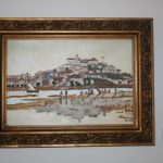 Podemos, por exemplo, encontrar vários quadros que retratam a cidade vista da margem esquerda, com o Rio Mondego, a ponte de Santa Clara e a Universidade como paisagem, incluindo as antigas lavadeiras na margem do Rio. A ponte pedonal Pedro Inês encontra-se retratada numa das pinturas desta exposição, a guitarra de Coimbra aparece igualmente pintada, bem como a torre da Universidade de Coimbra. Quase ao fundo da exposição podemos visualizar um quadro em que um estudante de capa e batina conversa com uma tricana. A vendedora de laranjas é outra das personagens retratadas numa das telas.