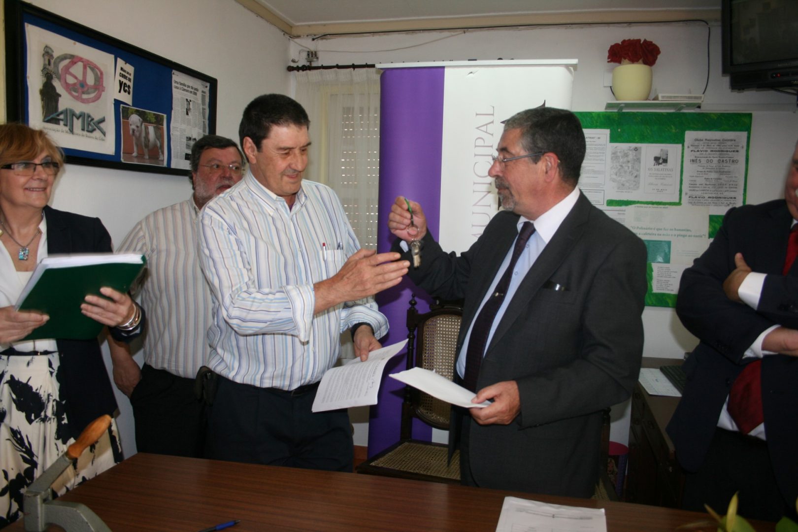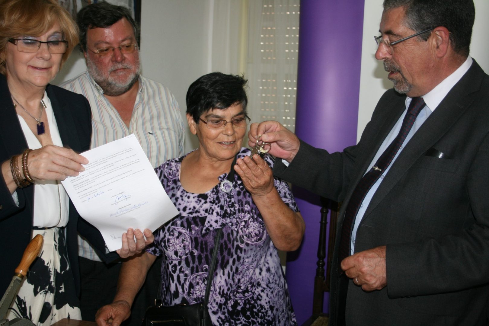 O presidente da Câmara Municipal de Coimbra (CMC), Manuel Machado, entregou, hoje, aos moradores, a chave de sete habitações sociais do Bairro de Celas, que foram recuperadas pela autarquia. A entrega foi efetuada em simultâneo com a assinatura do contrato de arrendamento, numa ação que decorreu na Associação de Moradores do Bairro de Celas, no Largo de São João, em Coimbra. As sete habitações sociais foram totalmente recuperadas pela CMC, num investimento global de 386.432,2€.