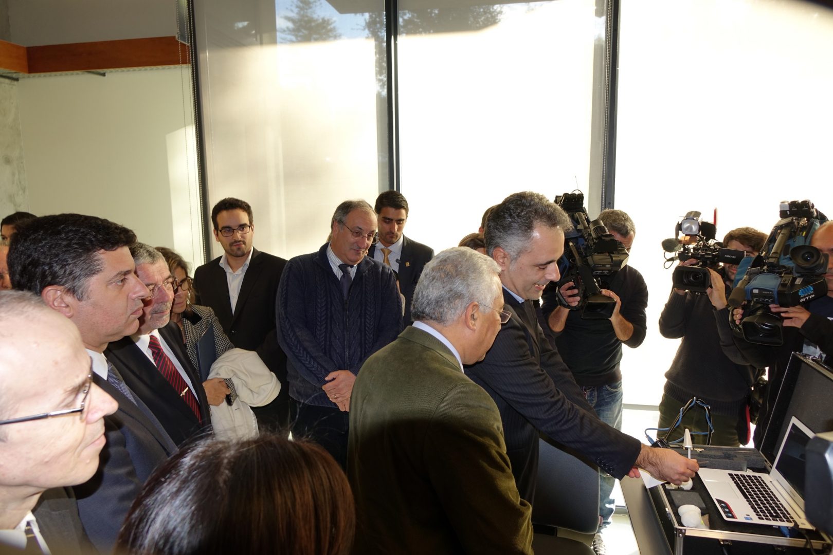 Antes dos discursos, a comitiva visitou o espaço da incubadora e aceleradora de empresas do IPN, em particular o seu laboratório de ensaios, o LED&MAT, a Perceive 3D, S.A, uma empresa incubada no IPN, de desenvolvimento de software de imagem em tempo real, e a Take The Wind, esta já na área de aceleração, e dedicada ao desenvolvimento de novas interfaces de comunicação e aprendizagem na área das ciências da vida, desenvolvendo ainda software para treino e simulação médica.