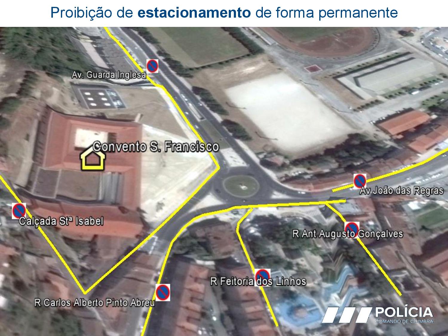 Estão ainda previstas proibições de estacionamento de forma permanente nas seguintes artérias e desde as 8h00 do dia 29 (domingo), até às 14h00 do dia 30 (segunda-feira):