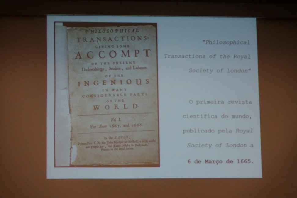 “A escrita de ciência” foi o tema abordado na primeira comunicação do dia, pelo bioquímico António Piedade, que apresentou a intertextualidade nas obras de divulgação científica. Um comunicador de ciência, segundo o docente, estabelece uma ponte escrita, um diálogo intertextual, não só entre o artigo científico de que parte e o texto de divulgação científica, mas também entre o leitor e o cientista. Para António Piedade, o divulgador de ciência não se limita a escrever sobre um dado conhecimento científico.