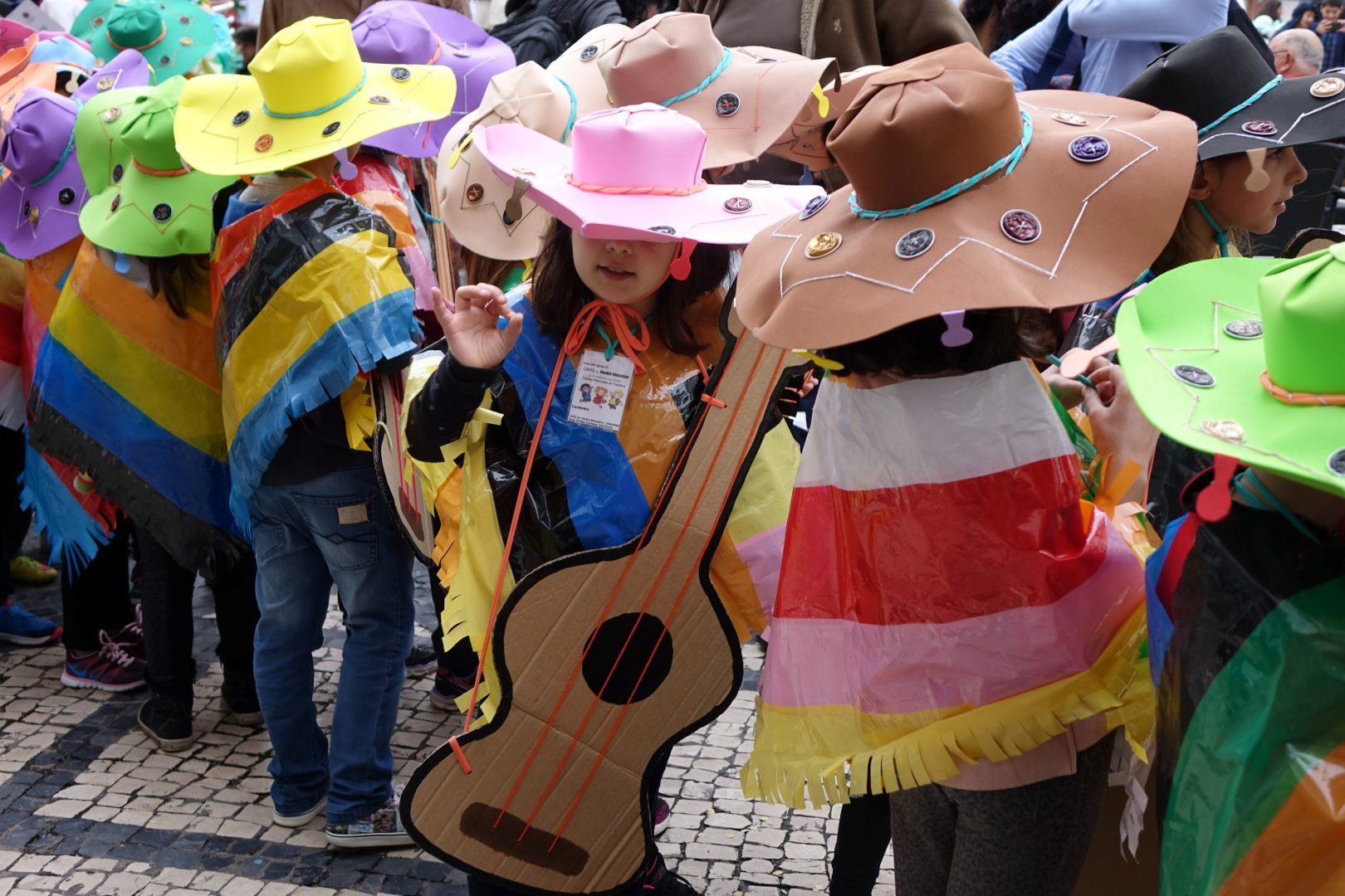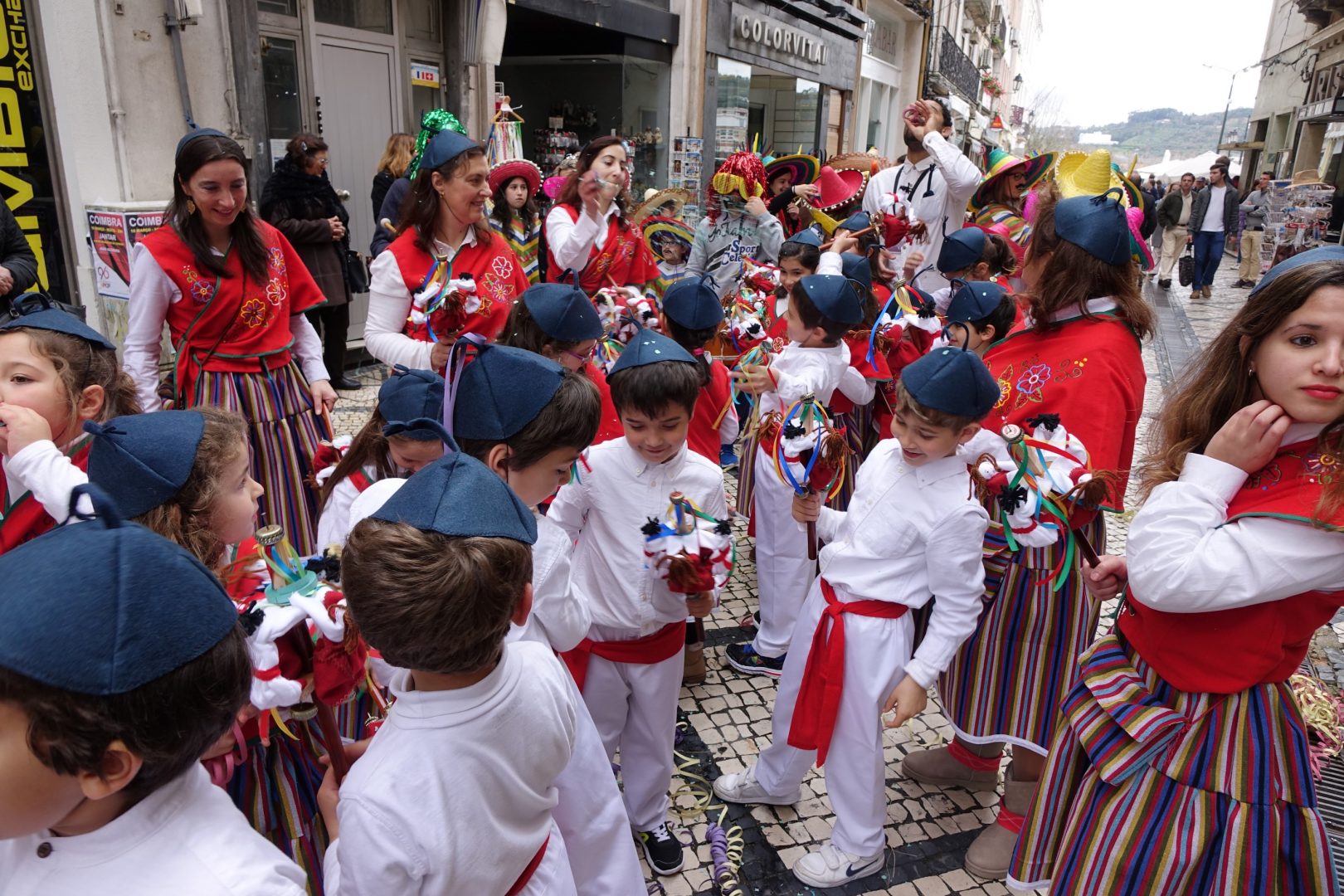 As ruas da Baixa encheram-se de cor, alegria e muita folia, esta manhã, com o desfile de Carnaval da Cáritas Diocesana de Coimbra. Cerca de 1200 crianças e jovens do Centro de Atividades dos Tempos Livres da Cáritas Diocesana de Coimbra desfilaram pelas ruas da Baixa, ao som da música de vários grupos de gaiteiros, dando vida às personagens que foram criadas à volta do tema “Disfarces do Mundo”. Africanos, romanos, japoneses, egípcios, havaianos, irlandeses, entre outros, desfilaram, aplaudidos pelas centenas de pessoas que estiveram a assistir, entre as quais, o presidente da Câmara Municipal de Coimbra (CMC), Manuel Machado, e a vereadora da Cultura, Carina Gomes.