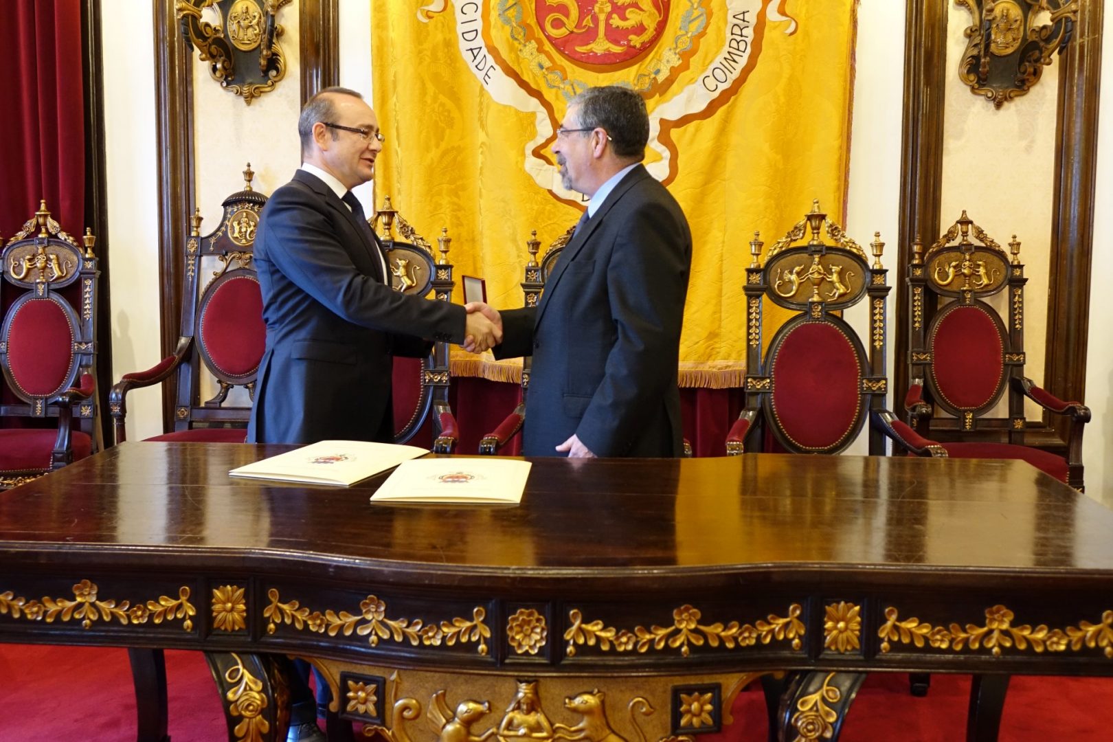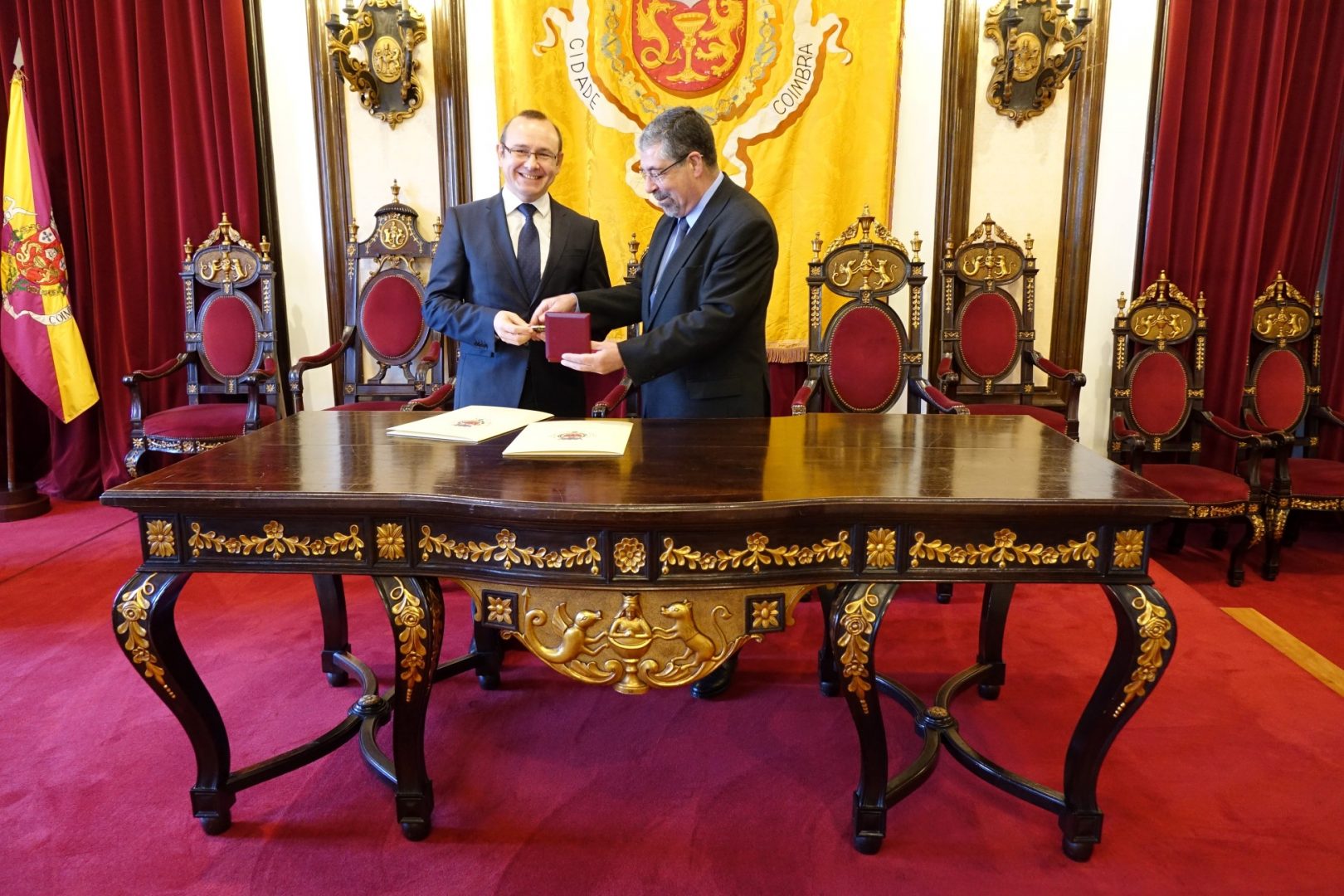 O presidente da Câmara Municipal de Coimbra (CMC), Manuel Machado, recebeu hoje, no seu gabinete, o embaixador da República da Moldávia em Portugal, Dumitri Socolan. Uma visita de cortesia, que serviu para o presidente da CMC e o embaixador moldavo se conhecerem e falarem sobre as relações entre a cidade de Coimbra e a Moldávia. Dumitri Socolan deixou claro que gostaria de ver uma cidade moldava geminar-se com Coimbra, ideia que Manuel Machado acolheu bem, sugerindo, porém, que essa geminação passe também pela ligação com outras entidades, como a Universidade de Coimbra (UC) e o Instituto Pedro Nunes (IPN).