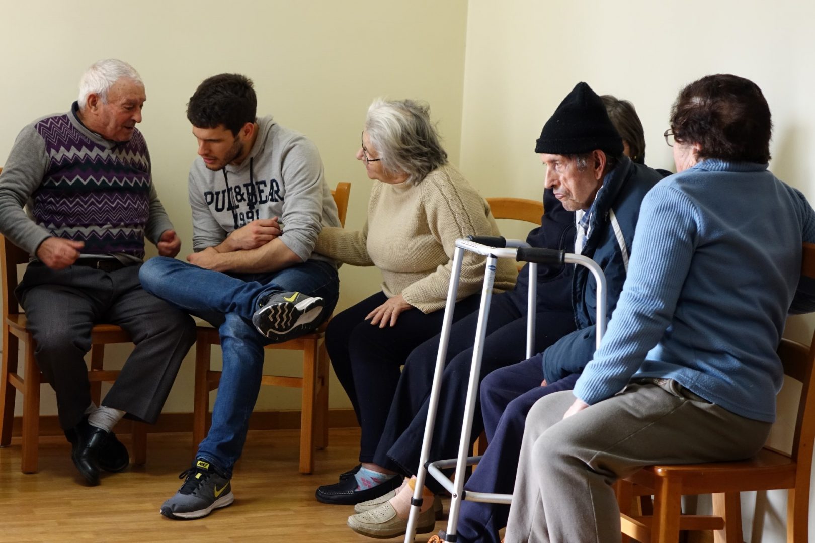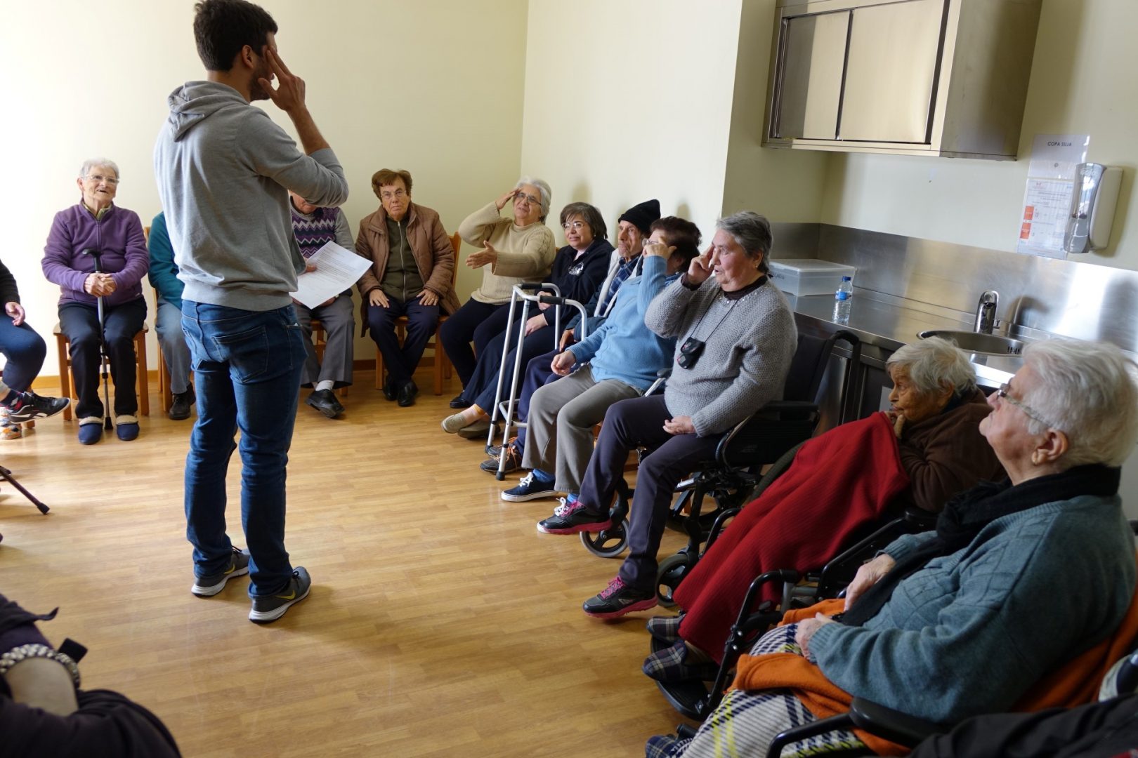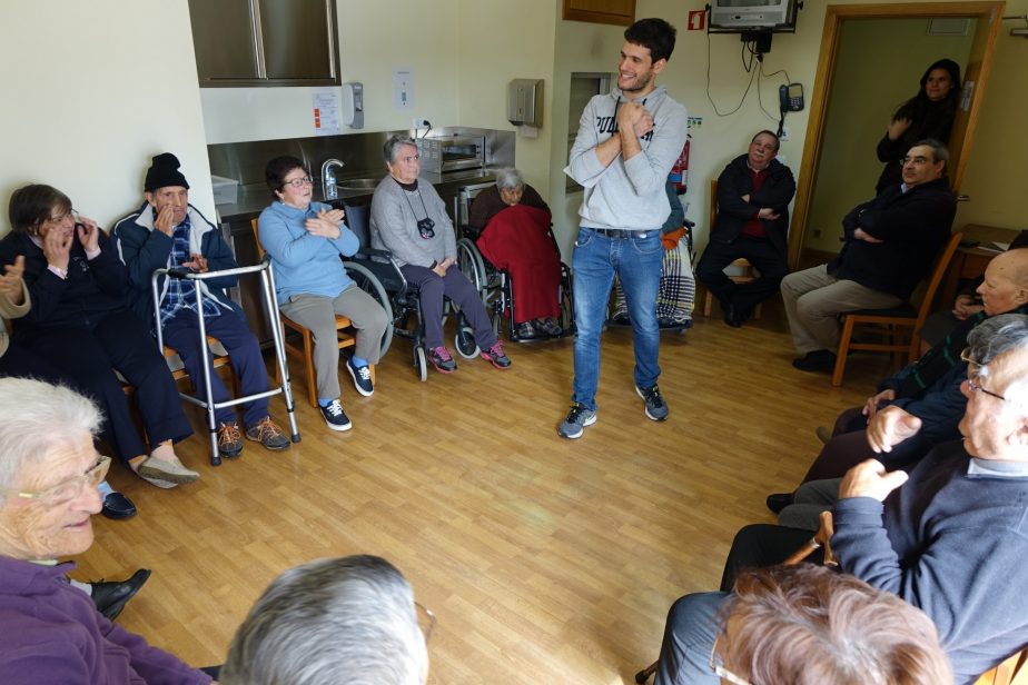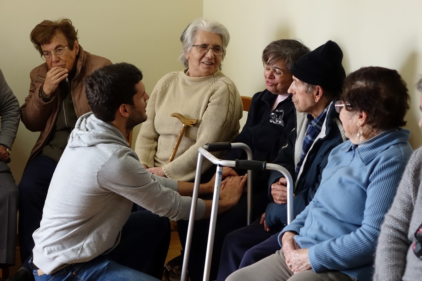 “Quando pensamos em amor, pensamos em quê?” Esta foi a primeira pergunta que João Santos fez ao grupo, pedindo a cada um dos participantes para lhe responder e encontrar um gesto que simbolizasse a sua resposta. Os 18 idosos falaram dos pais, dos filhos, dos netos e dos bisnetos, das mulheres e dos maridos, e de amores perdidos, e fizeram gestos como embalar, abraçar, beijar para descrever o que iam sentindo.