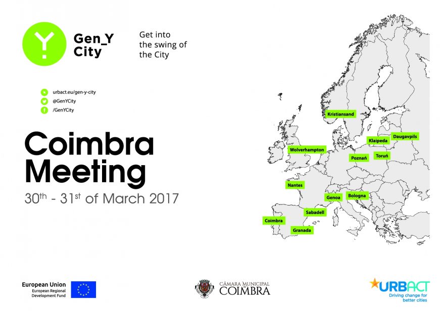 Além de Coimbra e da cidade líder Poznan (Polónia), o projeto GEN-Y-CITY conta atualmente com as cidades de Granada (Espanha), Wolverhampton (Reino Unido), Klaipeda (Lituânia), Génova (Itália), Kristiansand (Noruega), Bolonha (Itália), Nantes (França), Torun (Polónia), Sabadell (Espanha) e Daugavpils (Letónia), como parceiros.