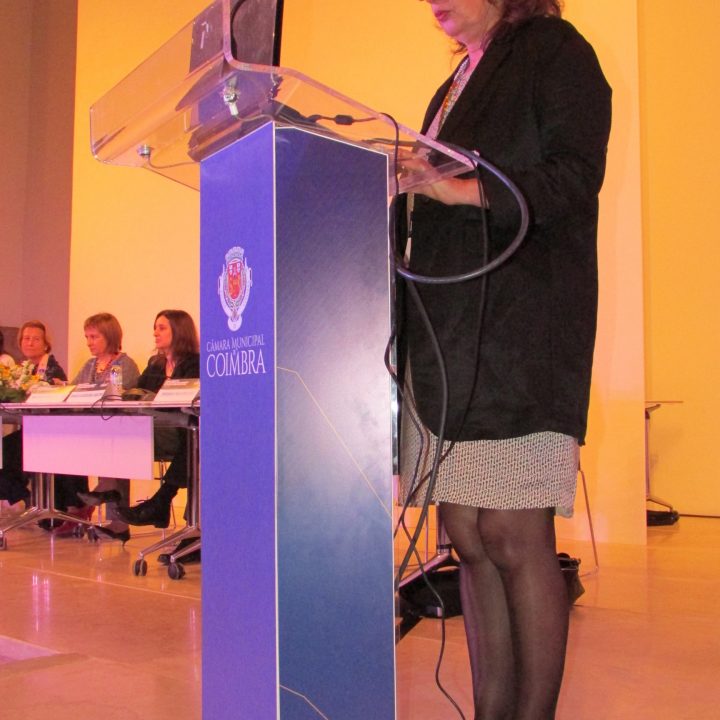 A vereadora da Cultura da CMC foi a primeira a discursar na sessão de abertura do 5.º Congresso UNESCO-UNITWIN 2017. Uma sessão que contou ainda com a participação do reitor da UC, João Gabriel Silva, do presidente da Turismo Centro de Portugal, Pedro Machado, da diretora regional da Cultura do Centro, Celeste Amaro (em representação do ministro da Cultura, Luís Filipe de Castro Mendes), com a presidente da Comissão Nacional da UNESCO, Ana Martinho, com a coordenadora da Cátedra UNESCO e da REDE UNESCO-UNITWIN Turismo, Cultura e Desenvolvimento da Université Paris 1 Panthéon-Sorbonne, Maria Gravari-Barbas, do diretor da Faculdade de Letras da UC, José Pedro Paiva, e da chair do congresso e coordenadora da Cátedra UNESCO e da Rede UNESCO UNITWIN Cultura, Turismo e Desenvolvimento da UC, Fernanda Cravidão.