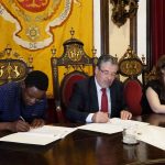 Manuel Machado formalizou igualmente, esta tarde, o contrato de comodato com a Cena Lusófona – Associação Portuguesa de Intercâmbio Teatral, que visa a cedência de espaços do edifício da Ala Central do Antigo Colégio das Artes, para que aquela associação os possa utilizar para desenvolver as suas atividades.