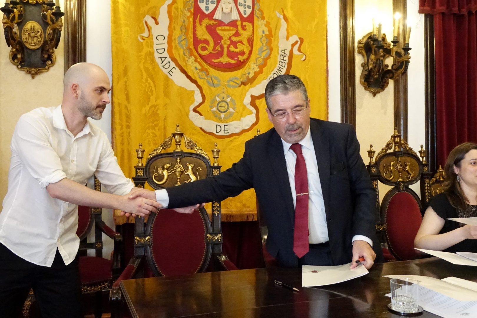 Para além do presidente da CMC, Manuel Machado, estiveram ainda nesta cerimónia, a vereadora da Cultura, Carina Gomes, e o diretor do Departamento de Cultura, Turismo e Desporto da CMC, Francisco Paz.