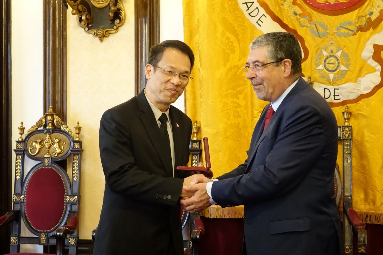 O presidente da Câmara Municipal de Coimbra (CMC), Manuel Machado, recebeu hoje, nos Paços do Município, representantes da Associação de Nações do Sudeste Asiático (ASEAN), em Portugal, composta por três embaixadores, da Indonésia, Tailândia e Filipinas. Uma visita, na qual os diplomatas apresentaram a organização regional de Estados do Sudeste Asiático.