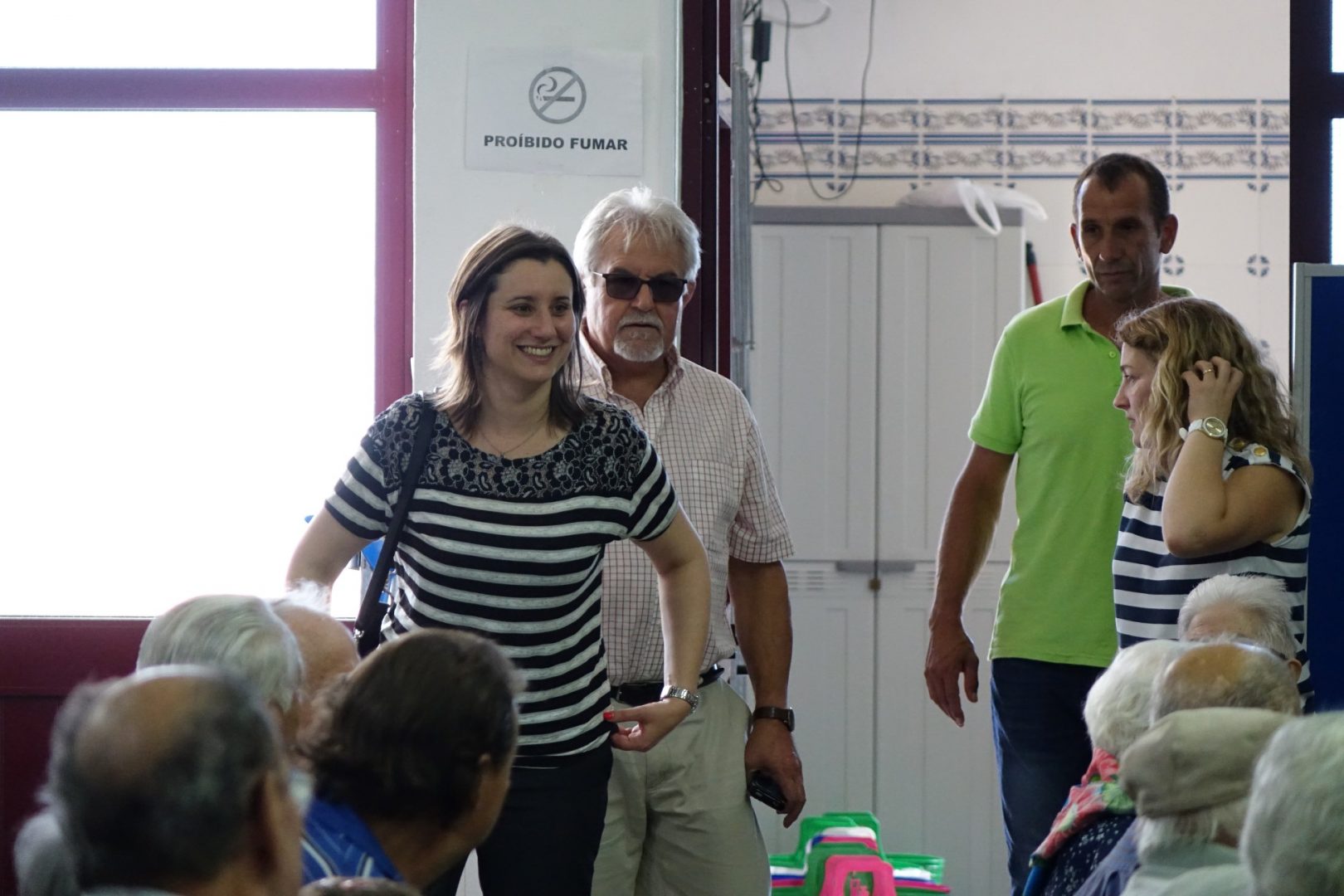 A vereadora da Cultura da Câmara Municipal de Coimbra (CMC), Carina Gomes, assistiu ontem, em Brasfemes, a uma sessão do projeto “Coisas do Amor”, promovido pela autarquia e desenvolvido pela companhia de teatro O Teatrão em oito Instituições Particulares de Solidariedade Social (IPSS) do concelho. Arménio Ferraz, presidente do Centro de Bem Estar Social de Brasfemes (CEBES), onde decorreu a iniciativa, também esteve presente.