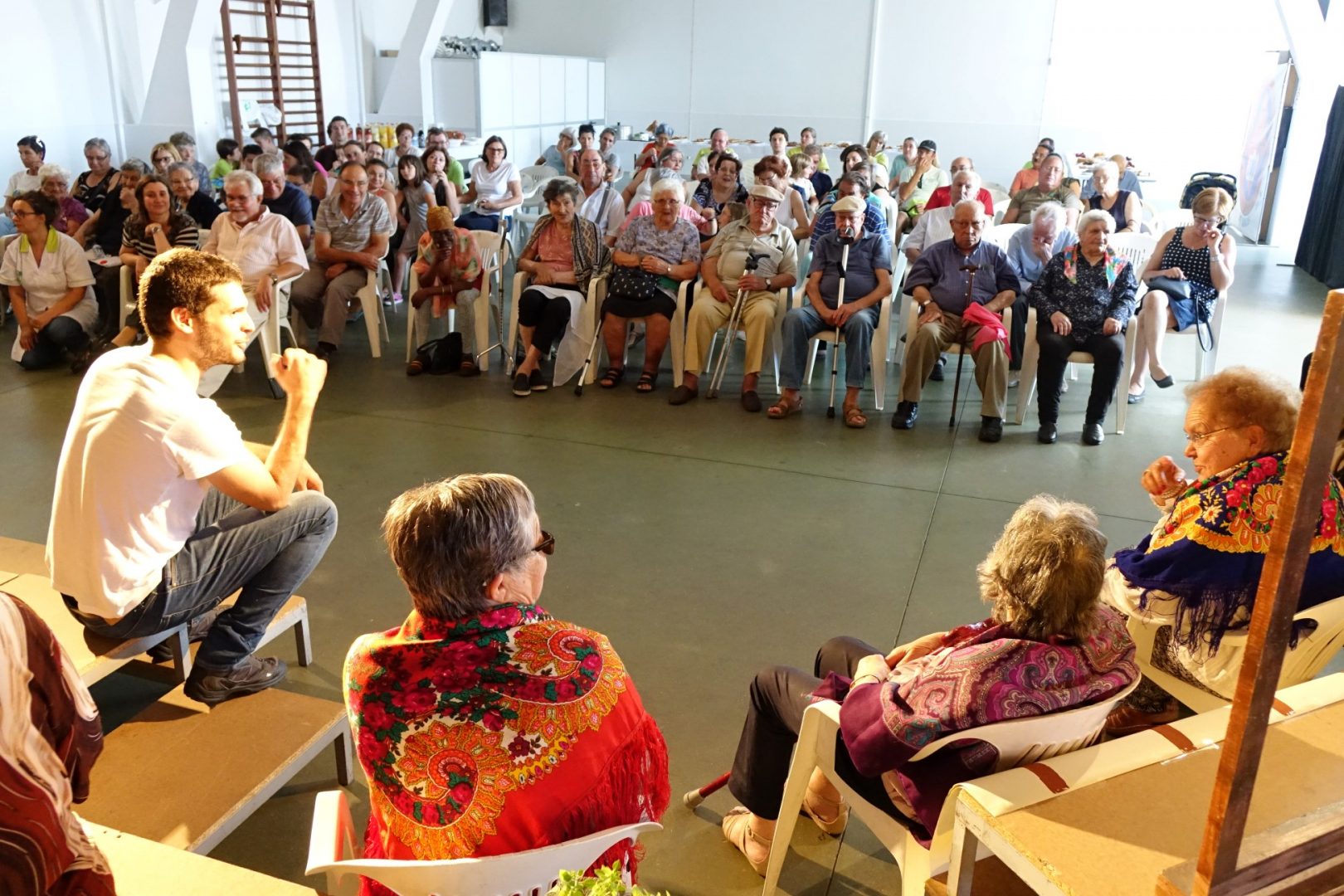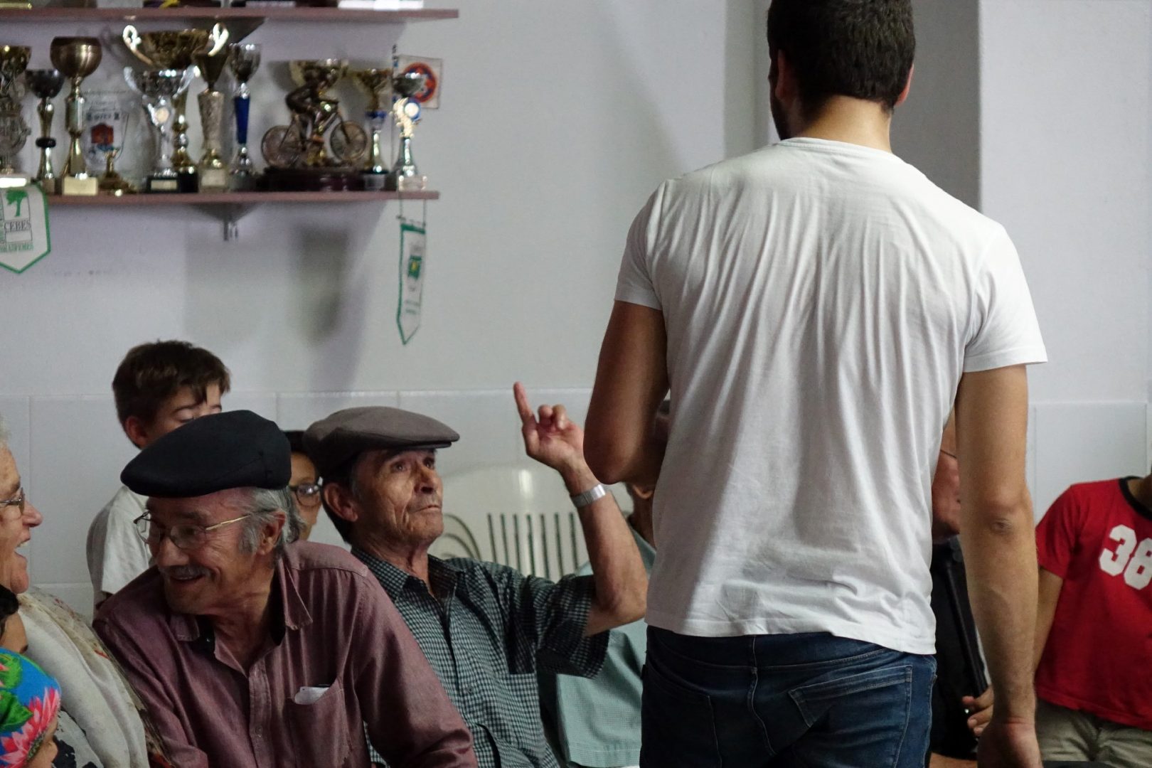 João Santos começou por questionar o grupo de idosos. “Quando pensamos em amor, pensamos no quê?” Todos os participantes tiveram oportunidade de se expressar, falando sobre os pais, os filhos, os netos, os bisnetos, as mulheres, os maridos e os amores perdidos. A sessão incidiu sobre o reviver de experiências dos mais idosos. Uma carta de amor, o namoro à janela, as cantorias, entre outros. Já os mais novos interpretaram vários temas musicais de outro tempo, vestidos a rigor.