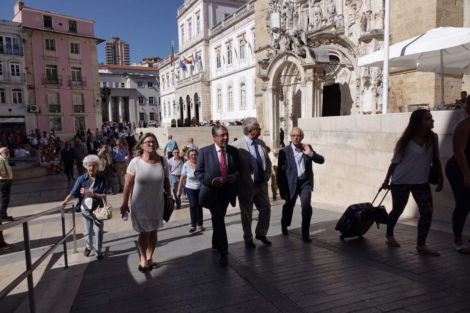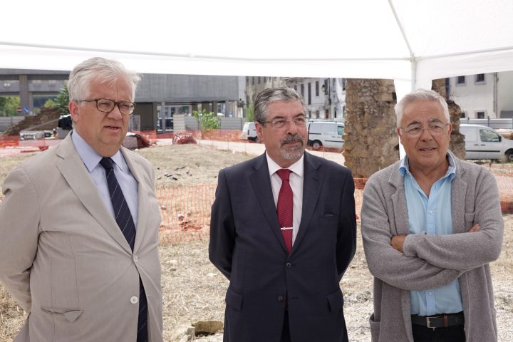 O presidente da Câmara Municipal de Coimbra (CMC), Manuel Machado, afirmou hoje que a construção do primeiro troço da Via Central, que irá ligar a Av.ª Fernão de Magalhães à Rua da Sofia, “é um passo crucial para a recuperação do centro histórico de Coimbra e para a reconciliação da cidade com o seu núcleo urbano original”. O autarca discursava após a assinatura do auto de consignação desta intervenção há muito necessária na Baixa de Coimbra (aceda aqui a outro artigo). A cerimónia contou com a presença do ministro Adjunto, Eduardo Cabrita, do presidente da Assembleia Municipal de Coimbra, Luís Marinho, e dos vereadores Rosa Reis Marques, Carlos Cidade, Jorge Alves e Carina Gomes, além de inúmeras outras personalidades.