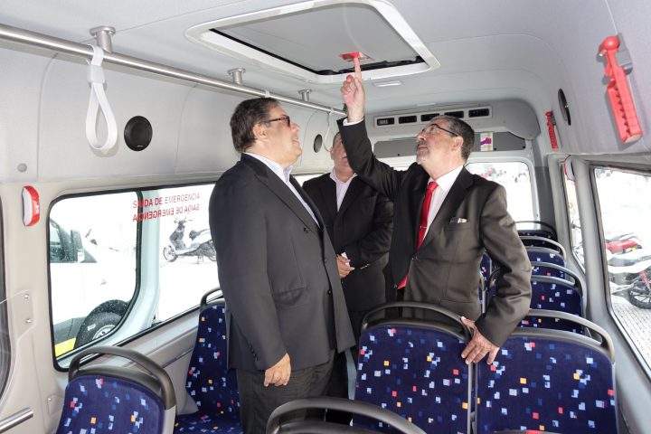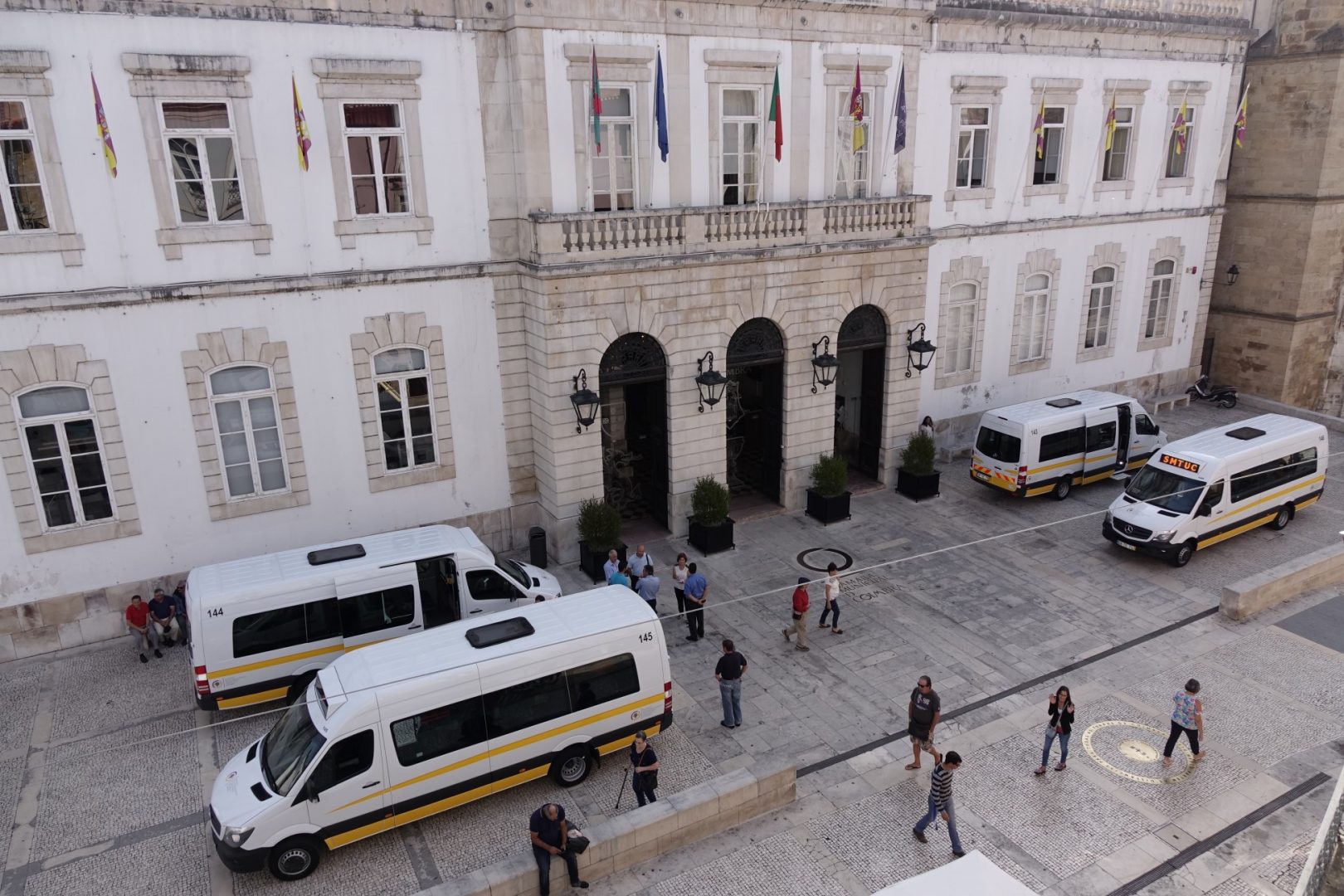 O presidente da Câmara Municipal de Coimbra (CMC), Manuel Machado, apresentou esta manhã (leia aqui as declarações do presidente durante a sessão), na praça 8 de Maio, quatro novos miniautocarros de passageiros que adquiriu para reforçar a frota dos Serviços Municipalizados de Transportes Urbanos de Coimbra (SMTUC). Estas quatro viaturas integram um lote de sete que custaram aos cofres camarários 418.000 euros (c/IVA), sendo que três delas já se encontram ao serviço e foram apresentadas no final do passado mês de abril.