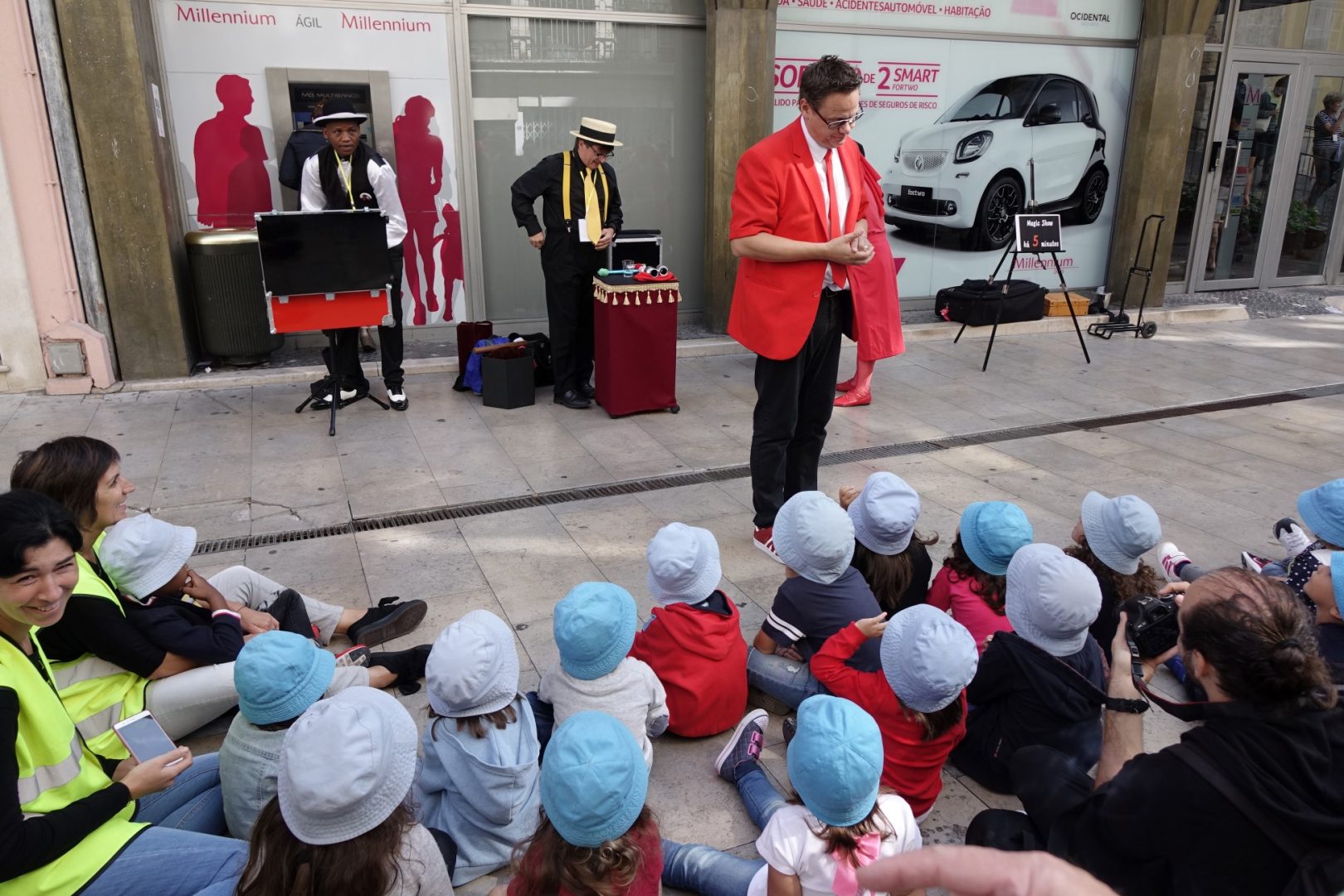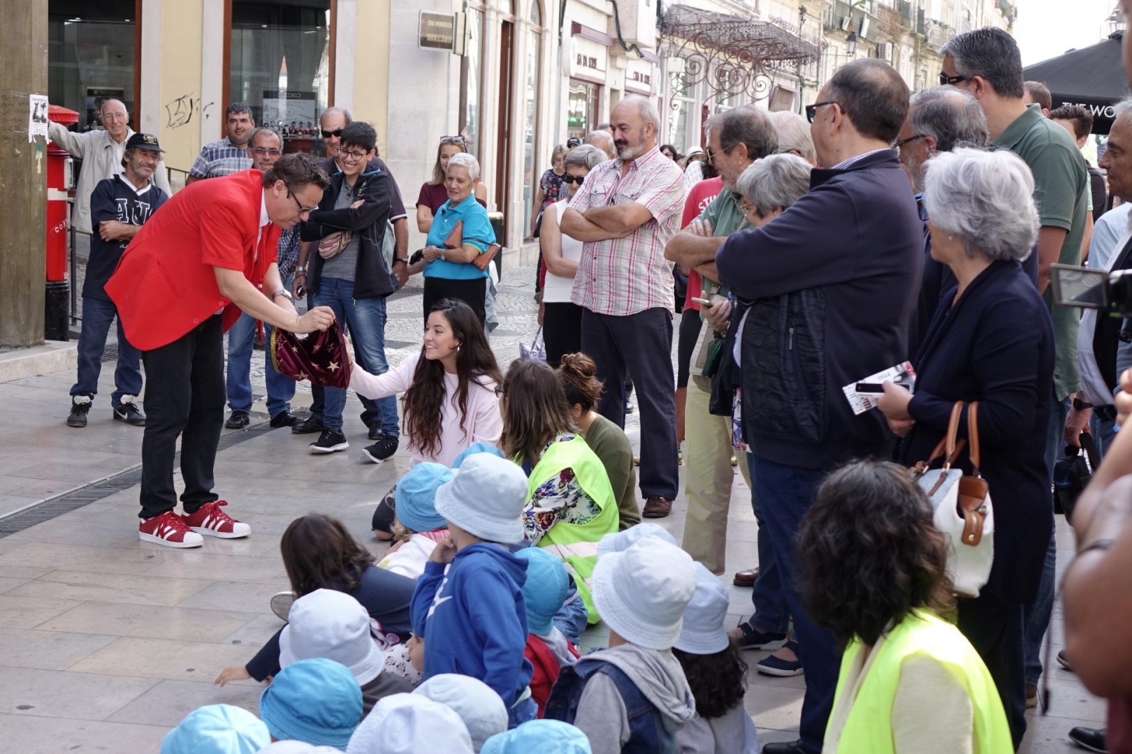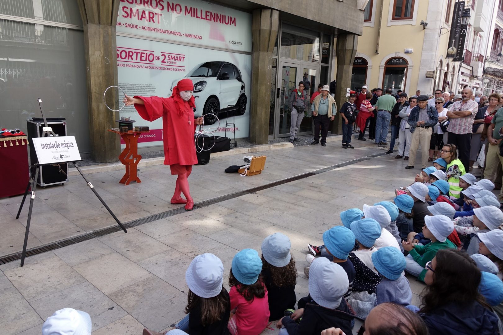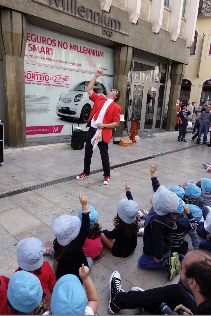 A Baixa de Coimbra foi hoje palco, ao final da manhã, de mais um espetáculo de magia de rua, no âmbito dos Encontros Mágicos – 21.º Festival Internacional de Magia de Coimbra. O japonês Kamimaro, o britânico Cliff, o italiano Vittorio Marino e o cubano Raul Camaguey protagonizaram um espetáculo único, que chamou a atenção de quem ia passando, acabando por juntar várias dezenas de pessoas na rua Ferreira Borges, junto ao Arco da Almedina. Os Encontros Mágicos de Coimbra 2017, promovidos (e financiados) pela Câmara Municipal de Coimbra e organizados pela LuÃs de Matos Produções, decorrem até ao próximo domingo em vários locais do concelho.