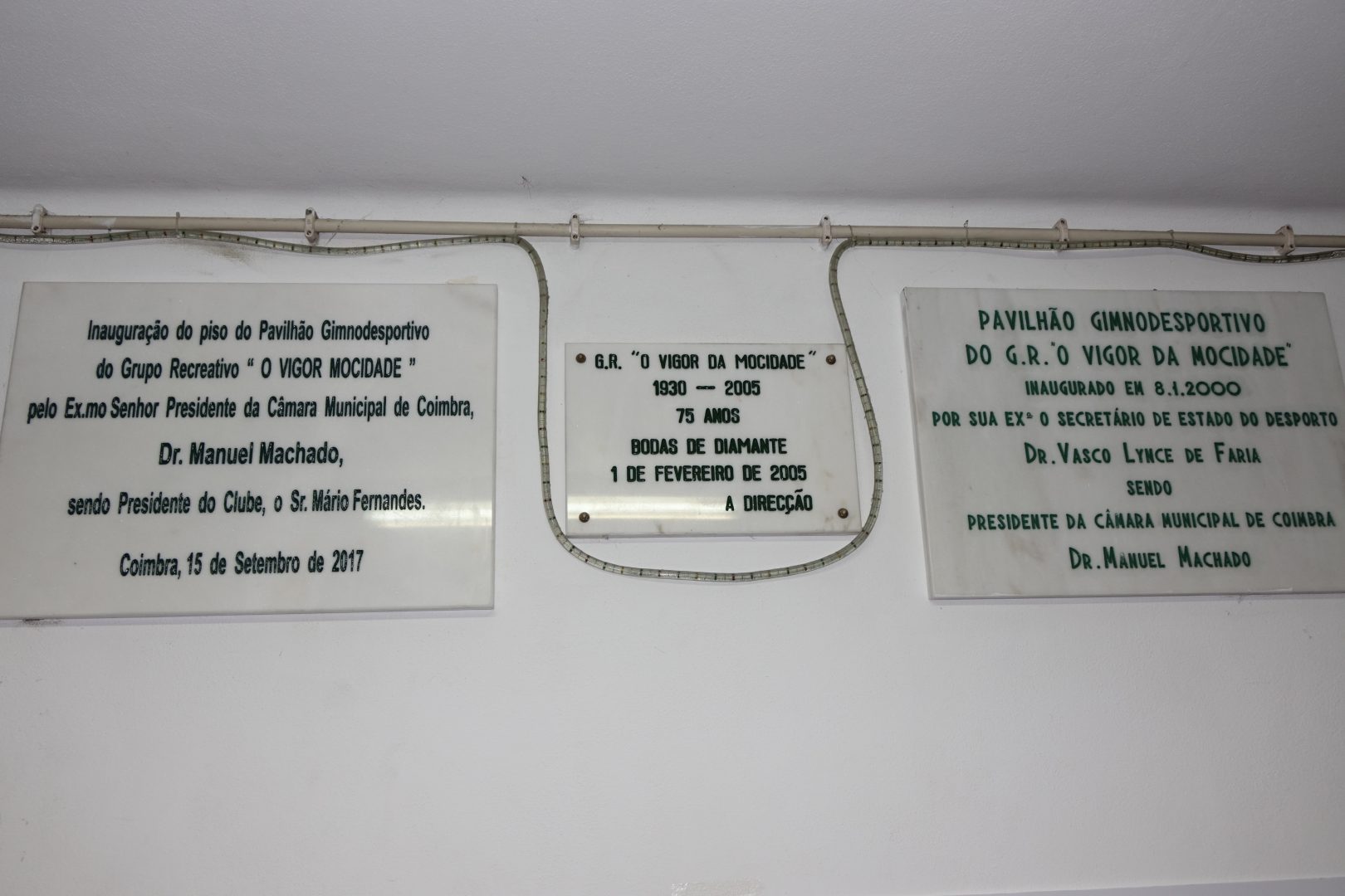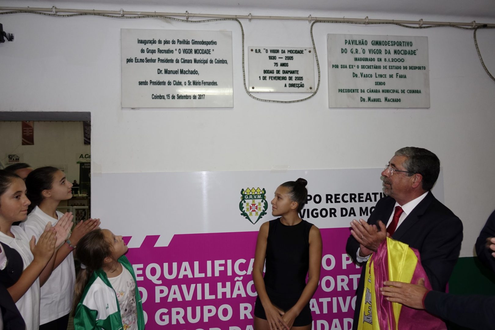 O presidente da CMC, Manuel Machado, participou no descerrar da placa comemorativa desta requalificação do piso e destacou que este “era um melhoramento mais do que necessário para São Martinho do Bispo e para ‘O Vigor da Mocidade’”. Manuel Machado partilhou com os presentes que se sentia “feliz por ter conseguido honrar a palavra dada”, uma vez que se comprometera com o financiamento do novo piso por parte da CMC, meses antes, numa visita ao pavilhão. O autarca fez ainda um agradecimento público ao “trabalho desenvolvido pelo ‘Vigor da Mocidade’, a todos os seus atletas, a todos os seus treinadores, a todos os seus dirigentes e a todos os seus associados por terem conseguido chegar até aqui”.