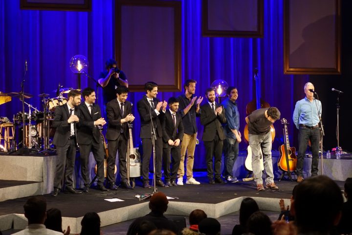 “Os Quatro e Meia” protagonizaram três espetáculos no grande auditório do CSF, nas noites de quinta, sexta e sábado. O público rendeu-se à apresentação do novo álbum “Pontos nos Is” e aos artistas, que se fizeram acompanhar por vários convidados especiais: Miguel Araújo, João Gil, João Só e Tiago Nacarato.