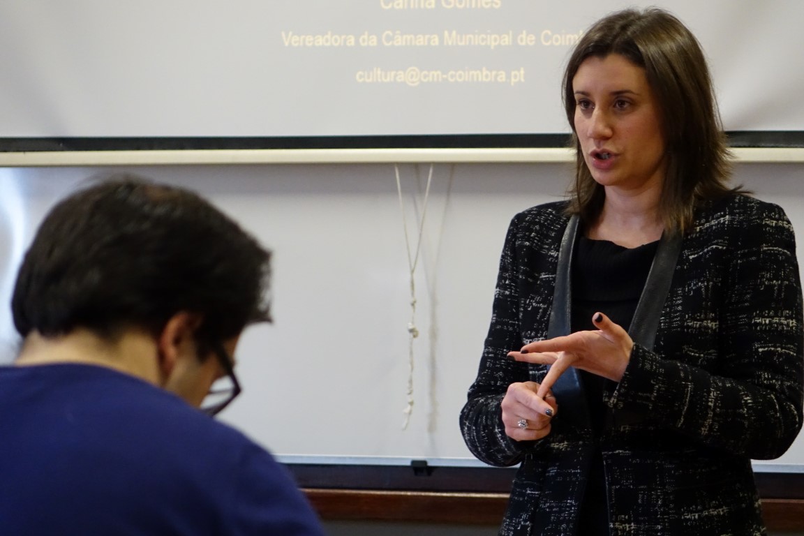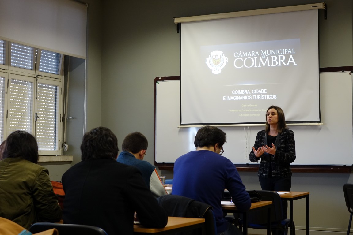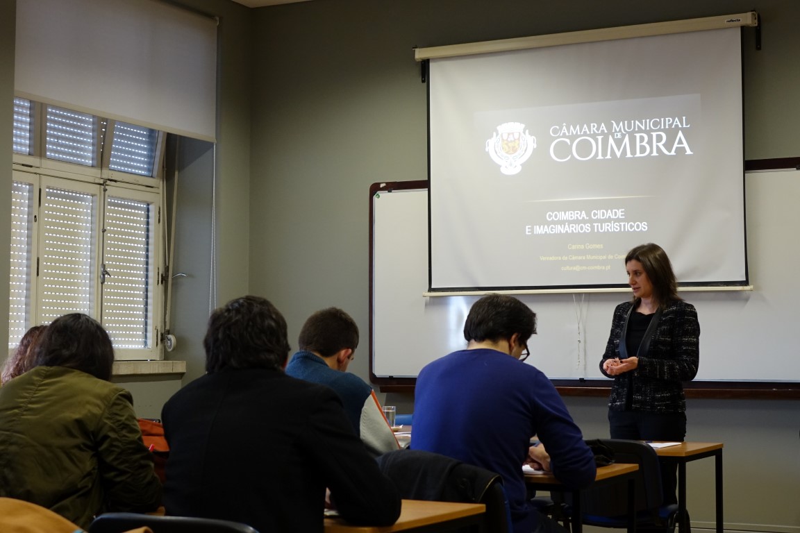 A vereadora da Cultura e Turismo da Câmara Municipal de Coimbra (CMC), Carina Gomes, deu, na passada sexta-feira, uma aula aos alunos do mestrado de Turismo, Território e Património da Faculdade de Letras da Universidade de Coimbra (FLUC), no âmbito do ciclo de conferências da “Rede da Cátedra UNESCO. Turismo Cultural e Desenvolvimento” promovido pela FLUC.