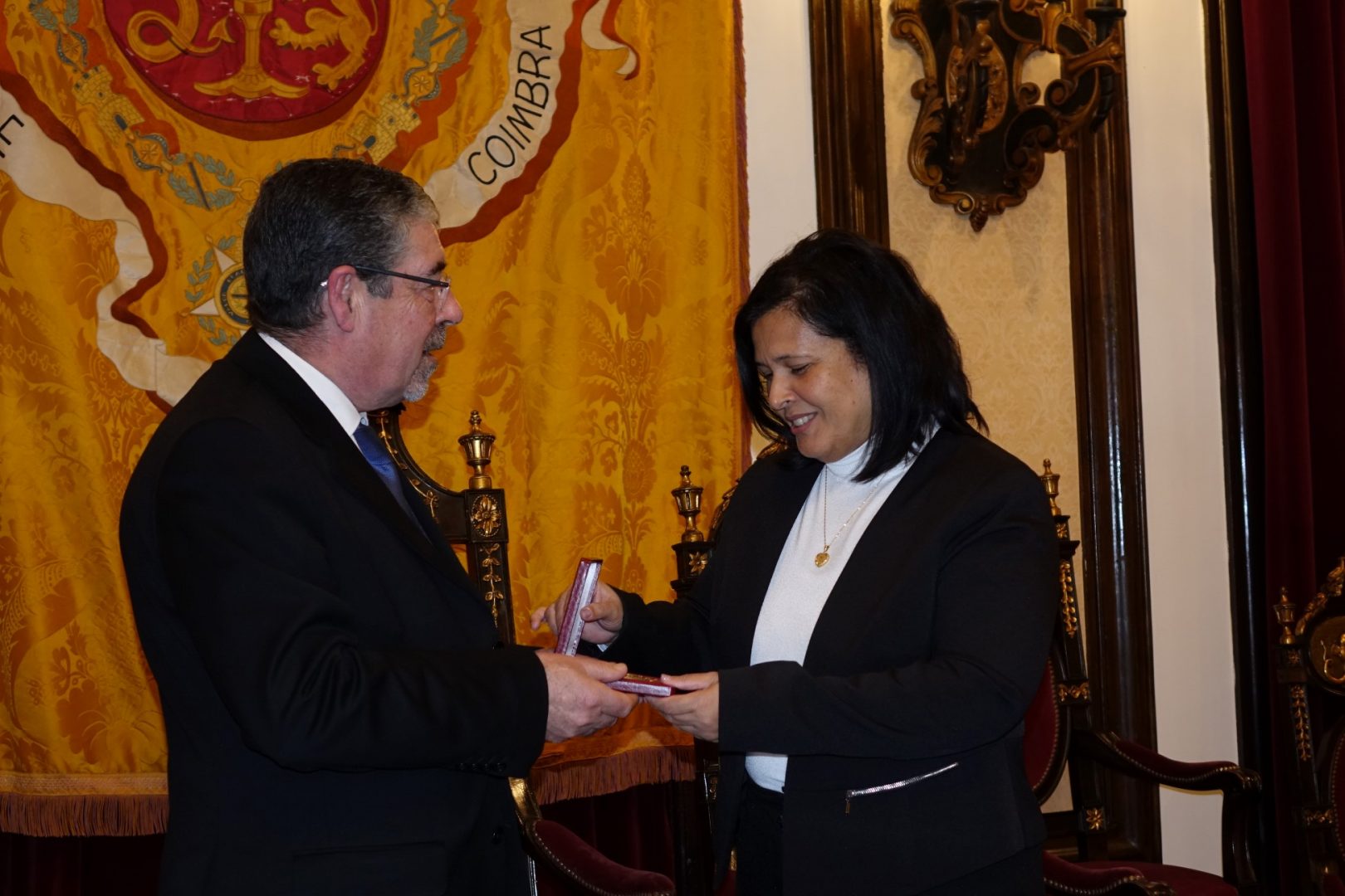 Manuel Machado transmitiu o gosto que tem em receber a nova embaixadora de Cuba em Coimbra, contextualizou um pouco da história da cidade e desejou que o trabalho da embaixadora “corra bem”, pois “é muito importante”.