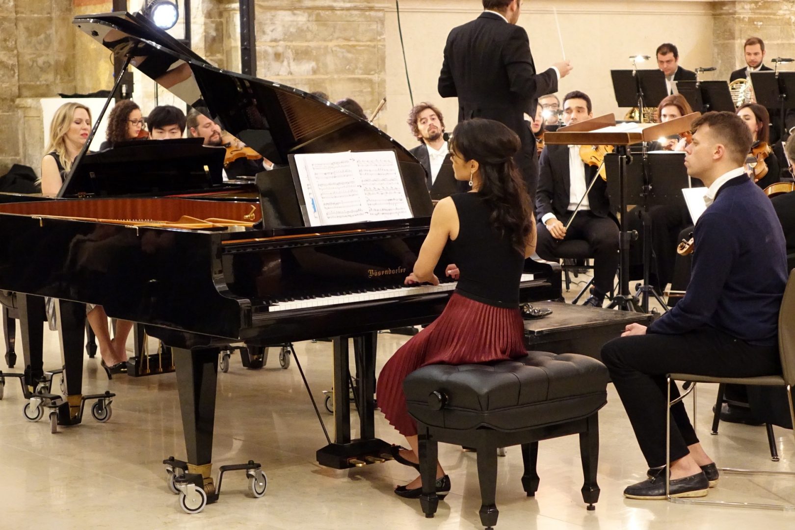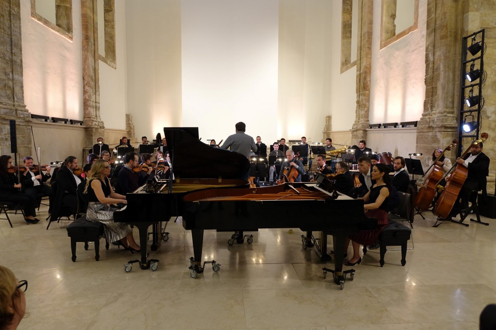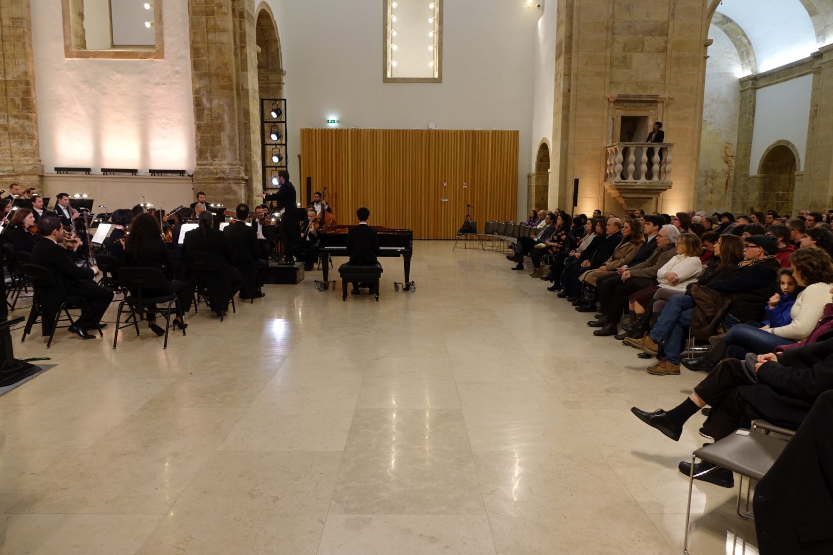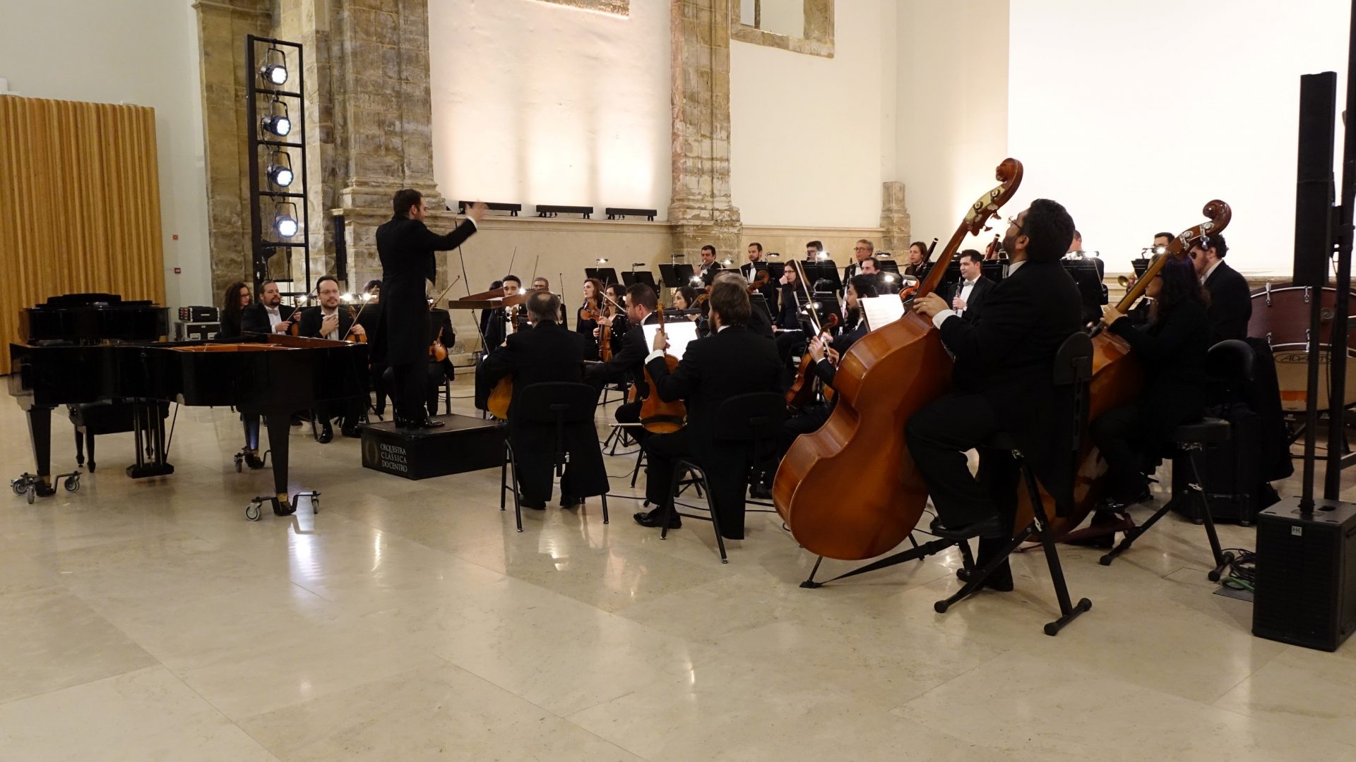 A antiga igreja do Convento São Francisco (CSF) recebeu ontem, ao final tarde, um concerto integrado no III Coimbra World Piano Meeting, um evento que está a decorrer até dia 9 de fevereiro, em Coimbra, e que é coorganizado pela Academia Internacional de Música “Aquiles Delle Vigne” e pela Câmara Municipal de Coimbra (CMC). O Concerto Sinfónico de Domingo juntou a Orquestra Clássica do Centro (OCC), conduzida pelo maestro José Eduardo Gomes, com três pianistas, Alexander Lau e o dueto Carmen Morin e Lana Henchell, num espetáculo memorável, que recebeu os maiores aplausos do público. A vereadora da Cultura da CMC, Carina Gomes, esteve presente.