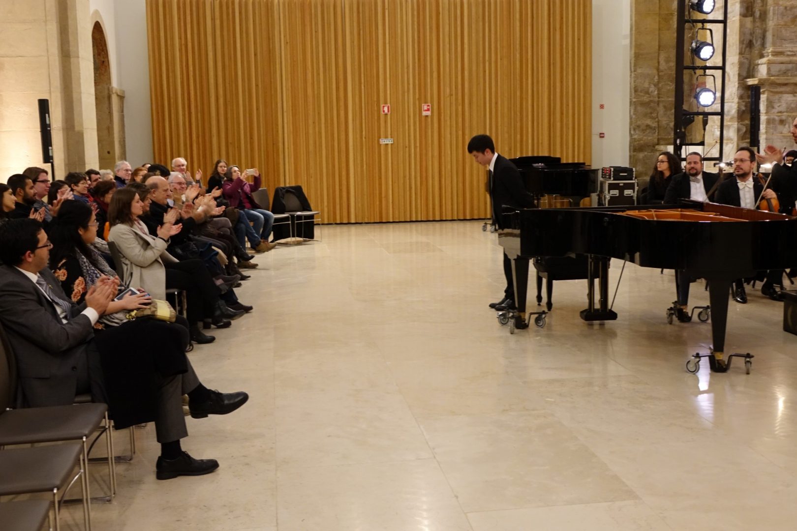 Alexander Lau e a OCC foram os primeiros a surpreender o público, ontem ao final da tarde, na antiga igreja do CSF, com o pianista chinês a deixar a plateia encantada com um solo notável. O concerto prosseguiu com a atuação, em conjunto com a OCC, das pianistas Carmen Morin e Lana Henchell, vencedoras do prémio Piano Duo Special Prize “Francis Poulenc’s” 2018, igualmente integrado no III Coimbra World Piano Meeting. No final do concerto, o público aplaudiu de pé os três pianistas e a OCC.