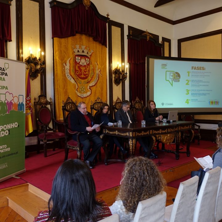 A primeira edição do orçamento participativo da Câmara Municipal de Coimbra (CMC) foi hoje lançada oficialmente, no Salão Nobre dos Paços do Município. O Coimbra Participa, que tem também uma versão dedicada aos jovens – Coimbra Jovem Participa –, tem como tema a Dinamização do Centro Histórico e é dotado de uma verba global de 150 mil euros. As propostas podem ser apresentadas já a partir de hoje, e até ao dia 30 de abril, na plataforma https://participa.cm-coimbra.pt/. “Arrancamos com o orçamento participativo de uma forma séria, com idoneidade. O objetivo é começarmos construtivamente, estimulando os cidadãos a participar”, afirmou Manuel Machado.