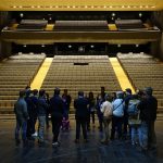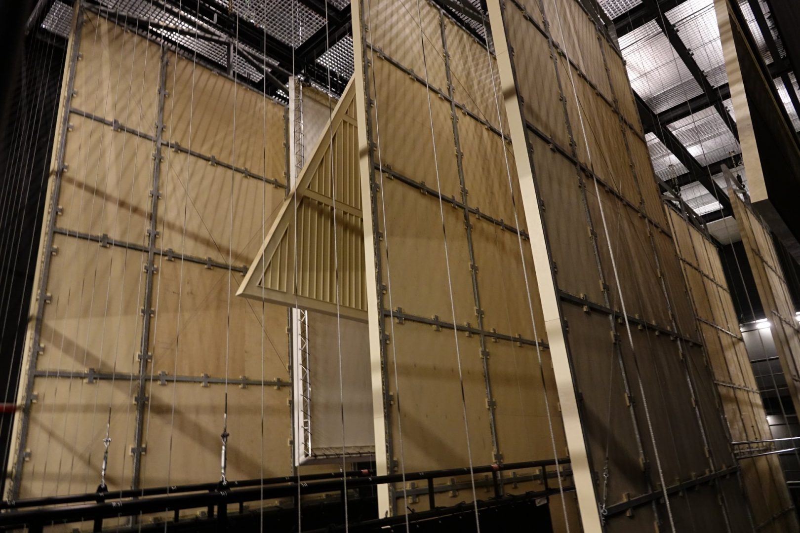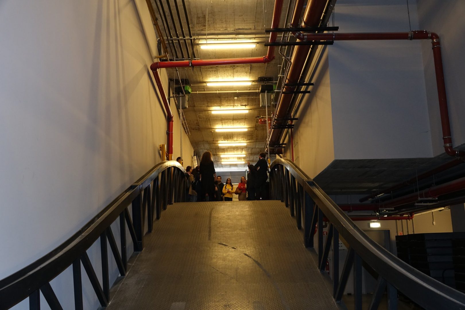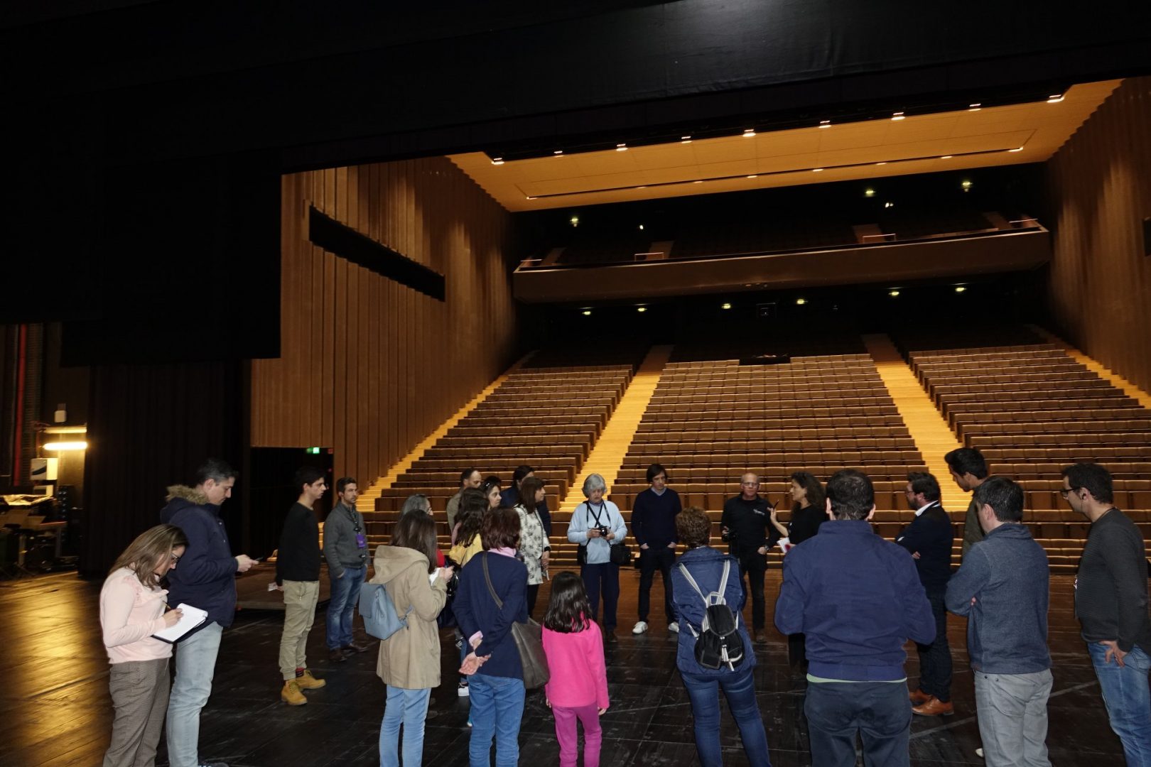 Chegados ao palco e durante cerca de 30 minutos a conversa centrou-se nas especificidades de uma sala polivalente que pode acolher diferentes tipos de eventos. A concha acústica que transforma o Grande Auditório numa sala de espetáculos, a teia e a falsa teia que permitem esconder o cenário, as quarteladas que adaptam o palco às necessidades dos eventos, o fosso de orquestra “escondido” por baixo das cadeiras, as cabines de tradução, os segredos do subpalco e dos seus alçapões, são alguns dos complexos equipamentos que fazem a magia acontecer. São “30 metros”, bem medidos desde o subsolo até ao teto.