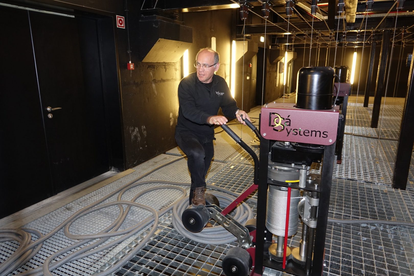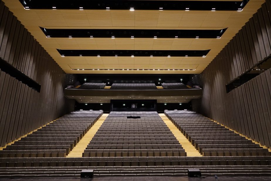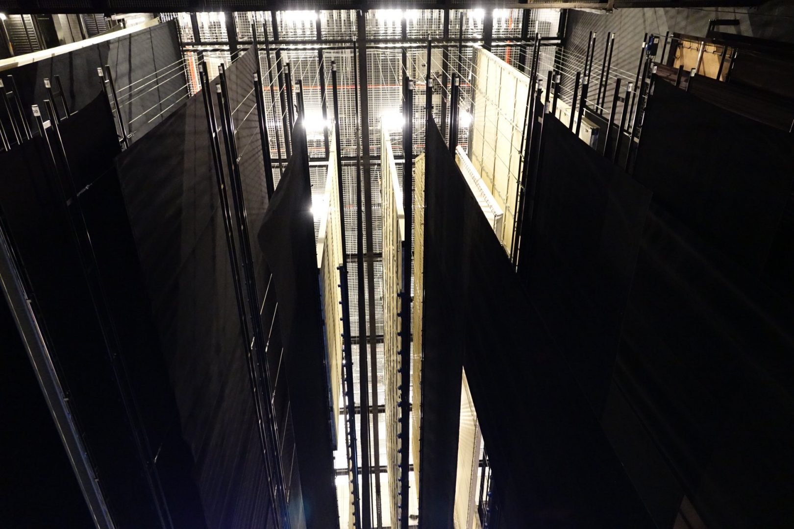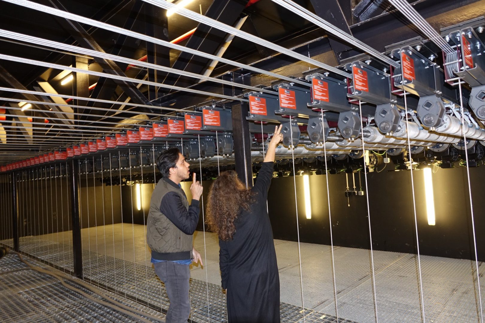 Chegados ao palco e durante cerca de 30 minutos a conversa centrou-se nas especificidades de uma sala polivalente que pode acolher diferentes tipos de eventos. A concha acústica que transforma o Grande Auditório numa sala de espetáculos, a teia e a falsa teia que permitem esconder o cenário, as quarteladas que adaptam o palco às necessidades dos eventos, o fosso de orquestra “escondido” por baixo das cadeiras, as cabines de tradução, os segredos do subpalco e dos seus alçapões, são alguns dos complexos equipamentos que fazem a magia acontecer. São “30 metros”, bem medidos desde o subsolo até ao teto.