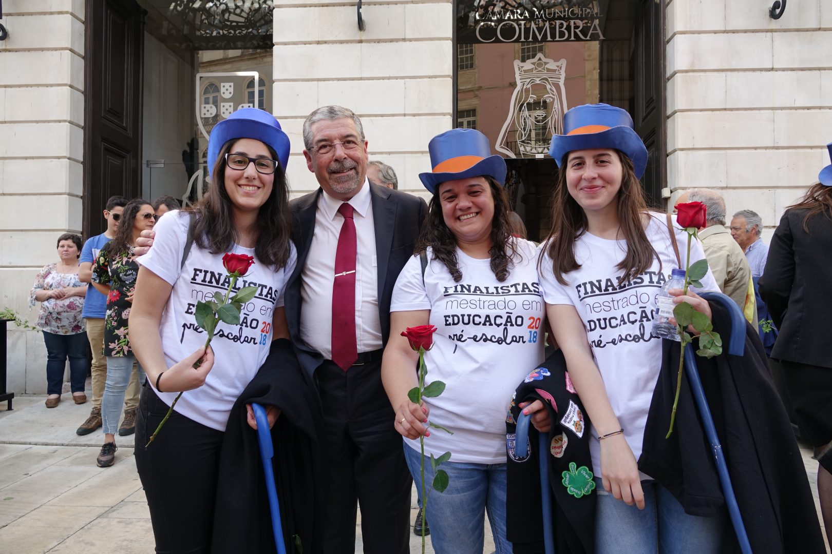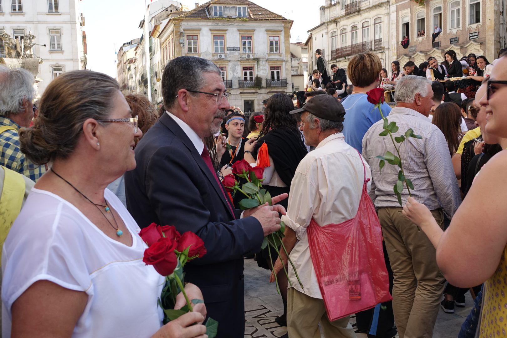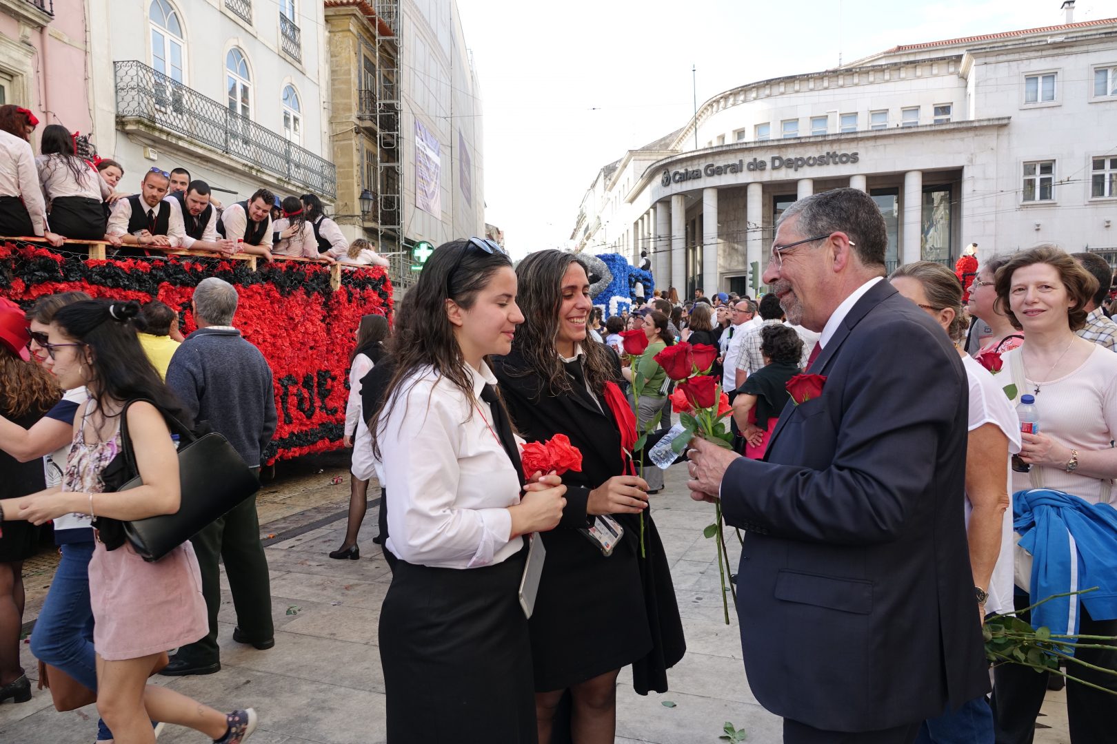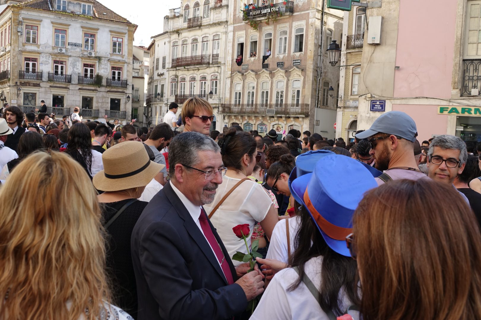 Este ano o Cortejo da Queima das Fitas saiu às ruas de Coimbra no dia da Mãe. O presidente da Câmara Municipal de Coimbra, Manuel Machado, e os vereadores Carlos Cidade e Carina Gomes, distribuíram rosas vermelhas às mulheres de todas as idades que passavam pelo átrio dos Paços do Município, cumprindo também a tradição, que já leva alguns anos, de acolher os estudantes com as portas do edifício abertas.