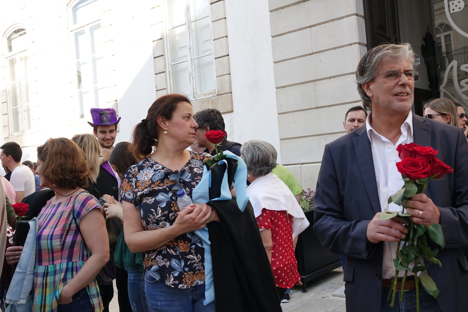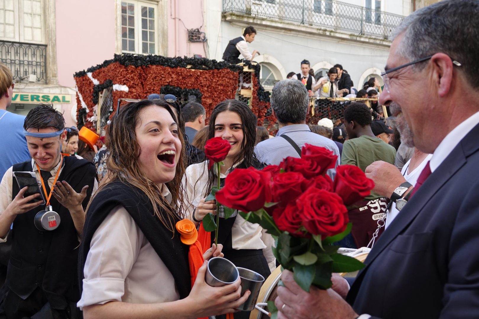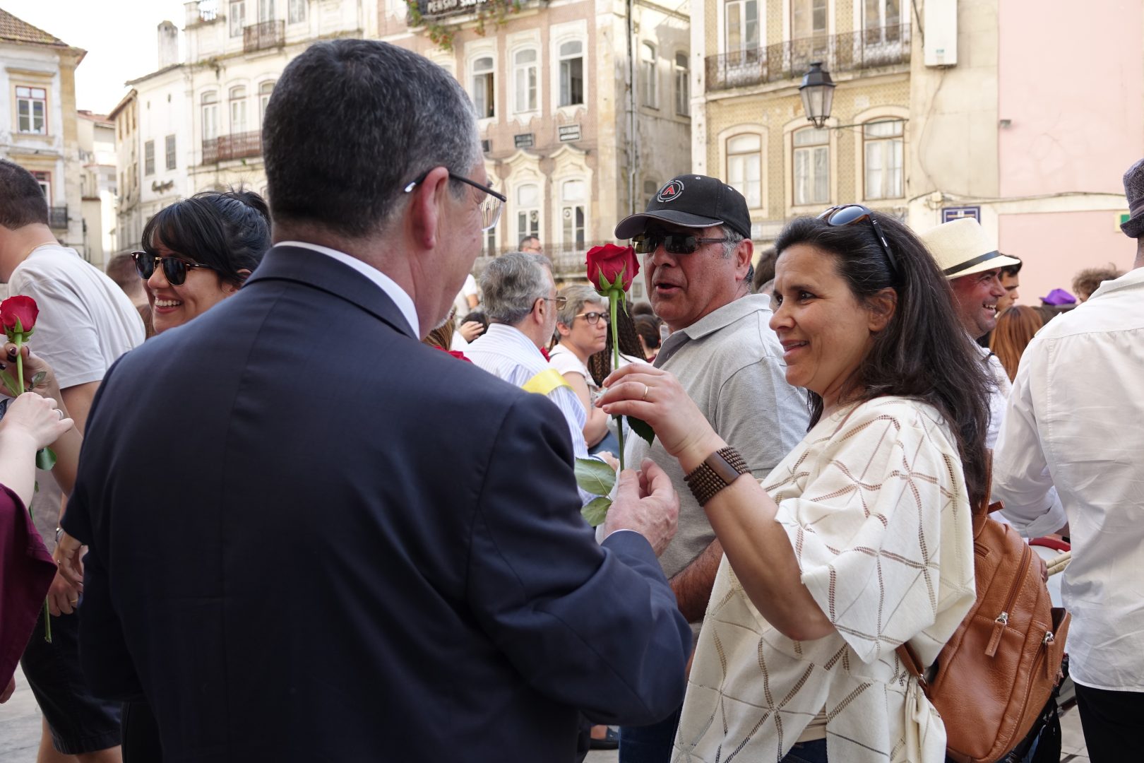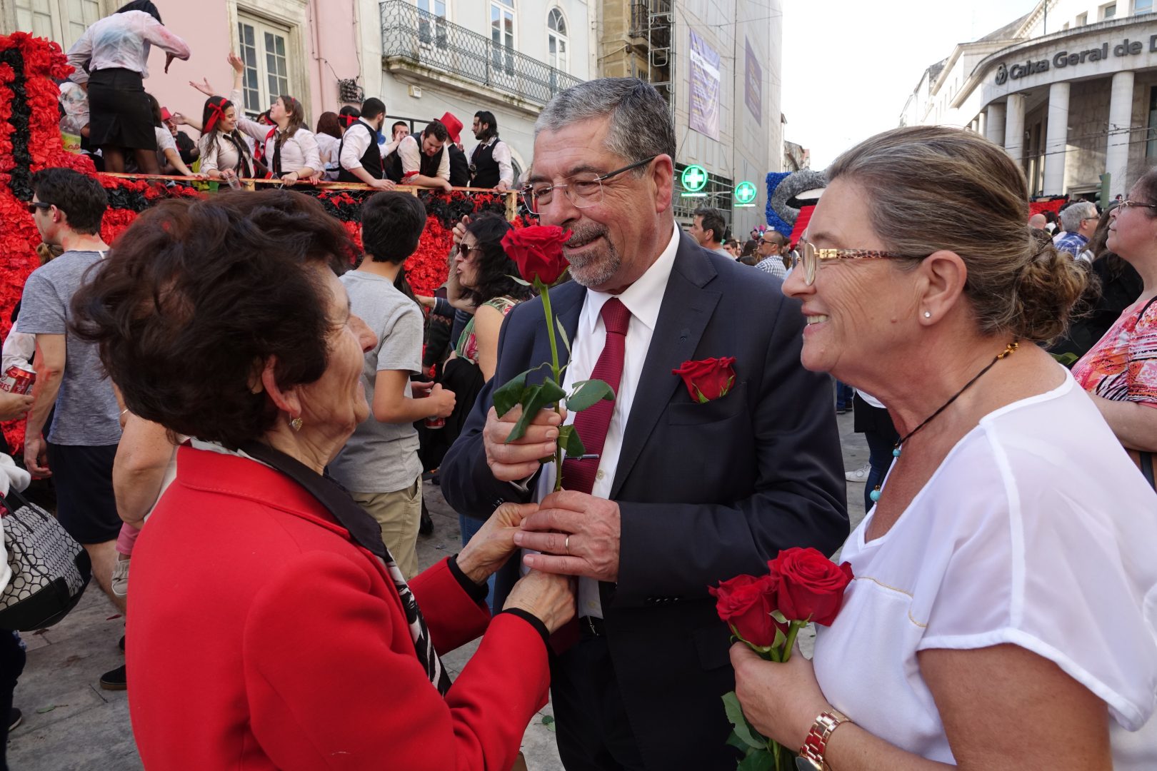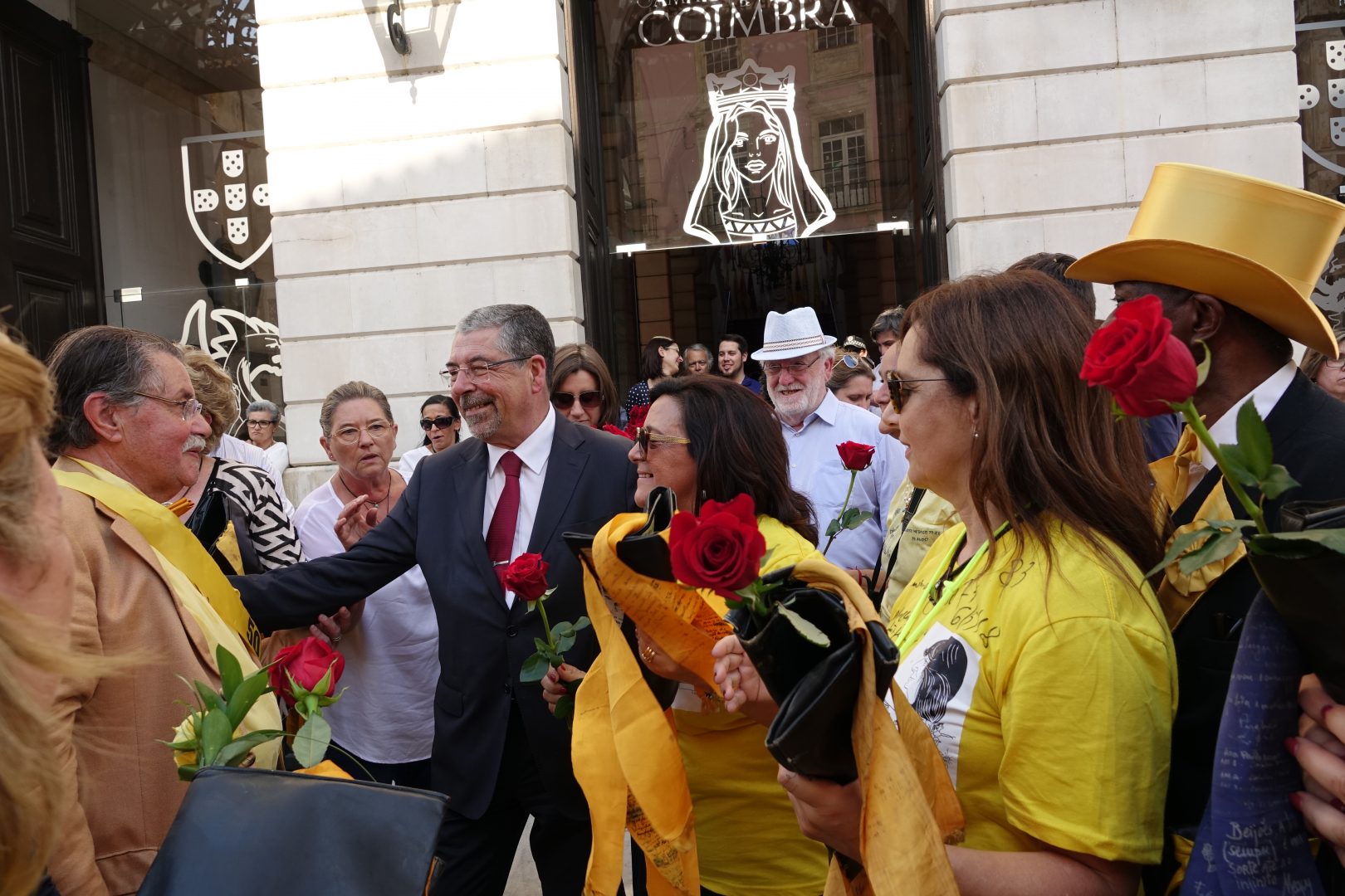 Este ano o Cortejo da Queima das Fitas saiu às ruas de Coimbra no dia da Mãe. O presidente da Câmara Municipal de Coimbra, Manuel Machado, e os vereadores Carlos Cidade e Carina Gomes, distribuíram rosas vermelhas às mulheres de todas as idades que passavam pelo átrio dos Paços do Município, cumprindo também a tradição, que já leva alguns anos, de acolher os estudantes com as portas do edifício abertas.