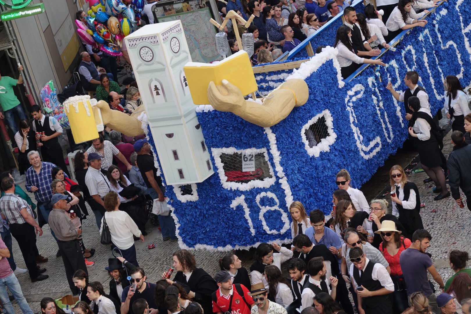 Ontem, as ruas da cidade encheram-se de alegria, folia e variedade de cores. O Cortejo dos fitados desceu as ruas, da Universidade à Baixa, composto por quase uma centena de carros alegóricos com as cores das Faculdades. Como já é habitual, as críticas políticas e sociais estiveram presentes no Cortejo, que reuniu milhares de conimbricenses e de visitantes às ruas da cidade.