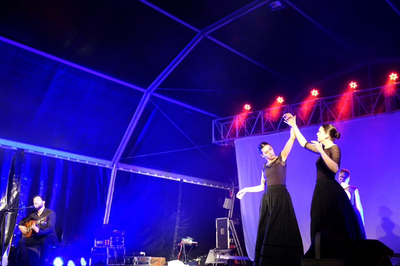 Uma hora antes, e com as cadeiras da plateia todas ocupadas, a companhia de dança Flic Flac celebrou a cidade, as tradições conimbricenses e a Canção de Coimbra, com um espetáculo bem diferente do habitual. Ana Figueiredo, Clara Carvalho, Jéssica Ferreira e Sofia Costa dançaram ao som da música de Eduardo Almeida, Miguel Luís, Luís Marques e de Luís Travassos, para contar uma história de amor vivida “Nas Margens do Mondego”.