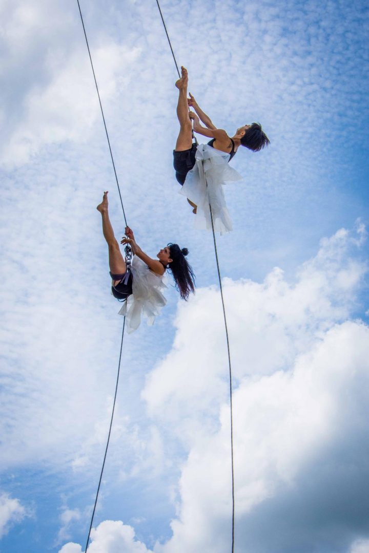 Intervenção artística com dança contemporânea e vertical, um quadro de sonhos ainda por acontecer. Três mulheres nascem da contemplação do público, dos desejos eternamente insatisfeitos e dos impulsos apaixonados, reprimidos e em suspensão. A performance convida-nos a questionar sobre as nossas próprias expectativas em relação ao que significa a felicidade.