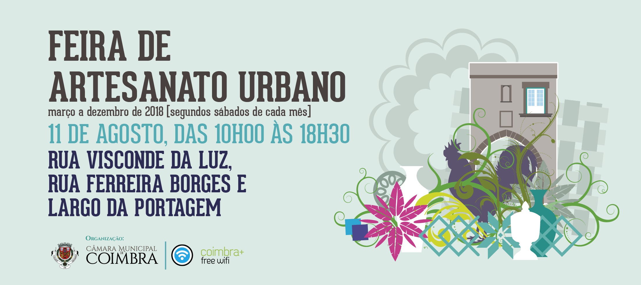 A Feira de Artesanato Urbano vai voltar a animar a Baixa de Coimbra no próximo sábado, dia 11 de agosto. A iniciativa, organizada pela Câmara Municipal de Coimbra aos segundos sábados de cada mês, decorre nas principais artérias do coração da cidade, como as ruas Ferreira Borges e Visconde da Luz e o Largo da Portagem.