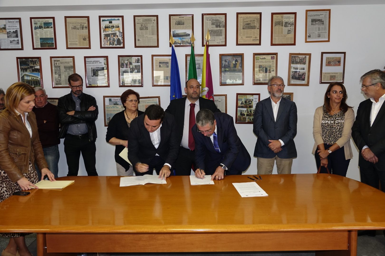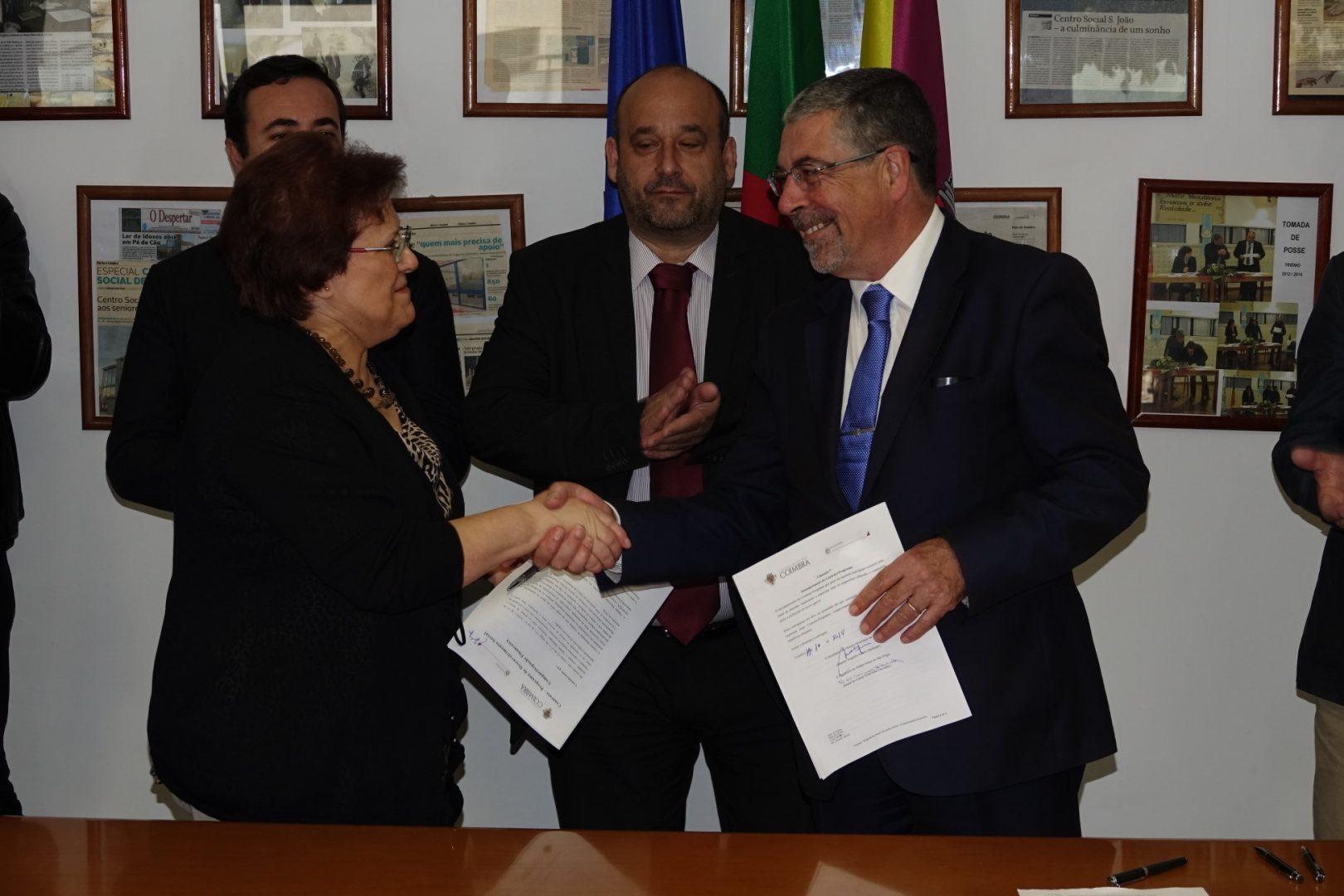 O presidente da Câmara Municipal (CM) de Coimbra, Manuel Machado, assinou, esta manhã, três contratos-programa que visam apoiar financeiramente os projetos submetidos ao abrigo do Regulamento Municipal para Atribuição de Apoios Sociais, pelo Centro Social S. João (CSSJ) – onde decorreu a cerimónia -, Associação de Famílias Solidárias com a Deficiência (Cavalo Azul), e a Aldeia (Lar) Graça de S. Filipe, num valor global de 114 mil euros.