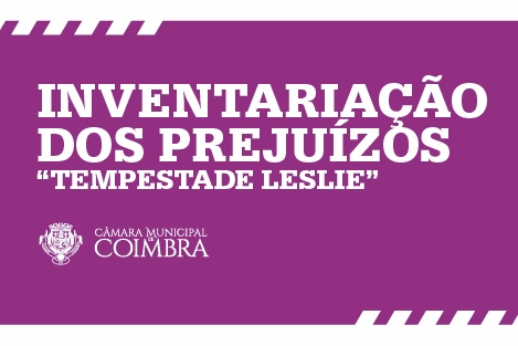 A Câmara Municipal (CM) de Coimbra está a proceder à inventariação dos prejuízos causados pela “Tempestade Leslie”, ocorrida nos dias 13 e 14 de outubro de 2018. Todos os interessados podem apresentar a esta autarquia, até dia 19 de outubro de 2018, sexta-feira, a relação dos prejuízos sofridos, devidamente documentados, mediante preenchimento de formulários próprios, nos serviços municipais de atendimento ao público nos Paços do Concelho, como expresso no Edital n.º 88/2018, assinado ontem pelo presidente da CM Coimbra, Manuel Machado.