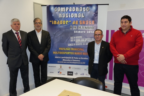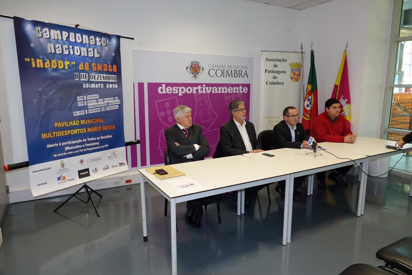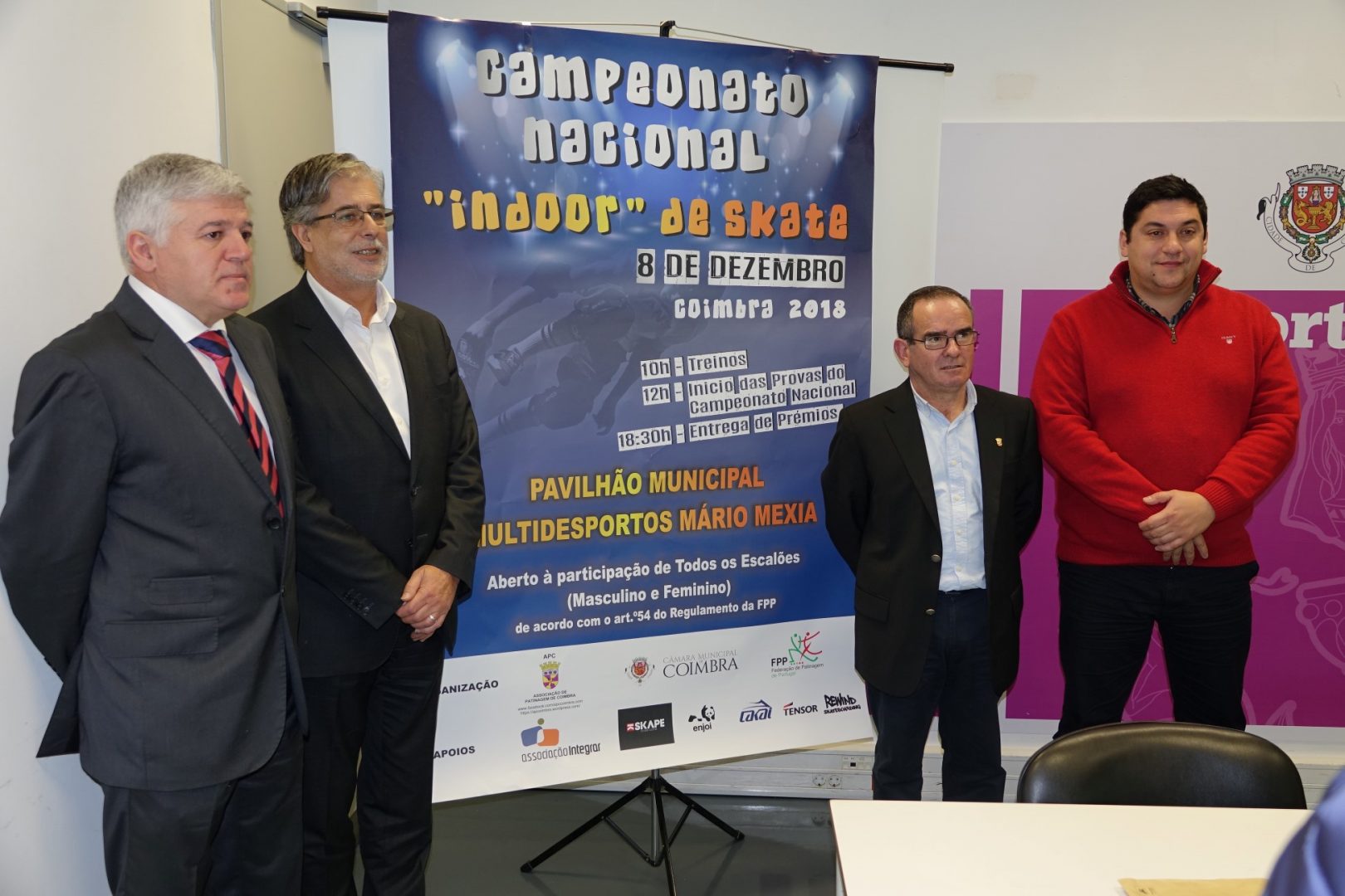 O primeiro Campeonato Nacional “Indoor” de Skate organizado em Portugal vai decorrer no sábado em Coimbra. A iniciativa partiu da APC, que encontrou o apoio necessário na FPP e na CM Coimbra para a realização da competição. “É com grande honra, prazer e orgulho que recebemos esta prova”, salientou o vice-presidente e vereador do Desporto da CM Coimbra, durante a conferência de imprensa que decorreu no Pavilhão Mário Mexia. “E isso só é possível devido a esta dinâmica notável da Associação de Patinagem de Coimbra que, com a ajuda da Federação Portuguesa de Patinagem, assumiu a responsabilidade de alavancar estas novas variantes”, avançou Carlos Cidade, concluindo: “Vai ser um espetáculo diferente numa grande cidade, Coimbra”.