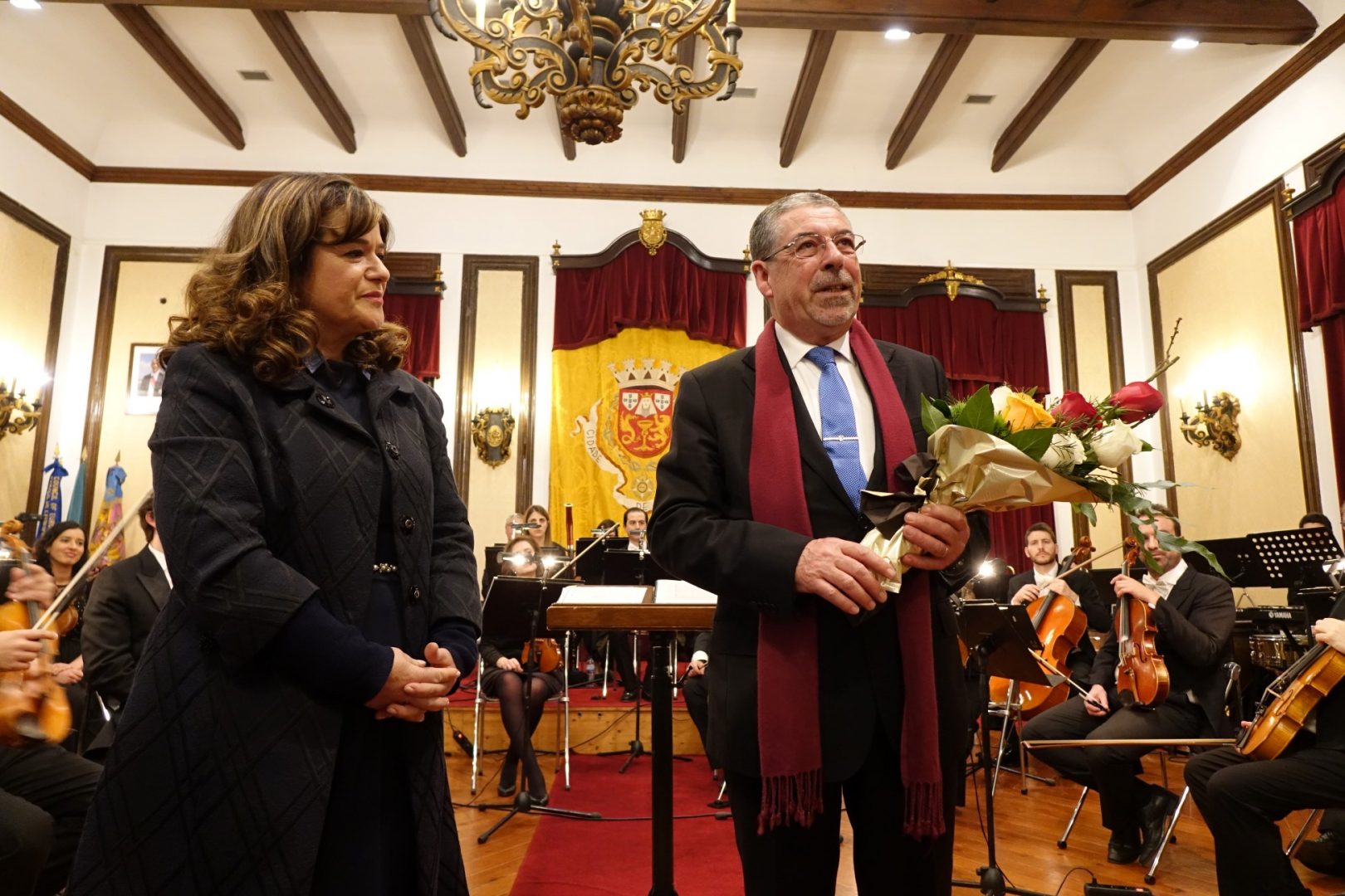O presidente da CM Coimbra, Manuel Machado, esteve presente e recebeu, como agradecimento, um ramo de rosas das mãos da diretora da OCC, Emília Cabral Martins.