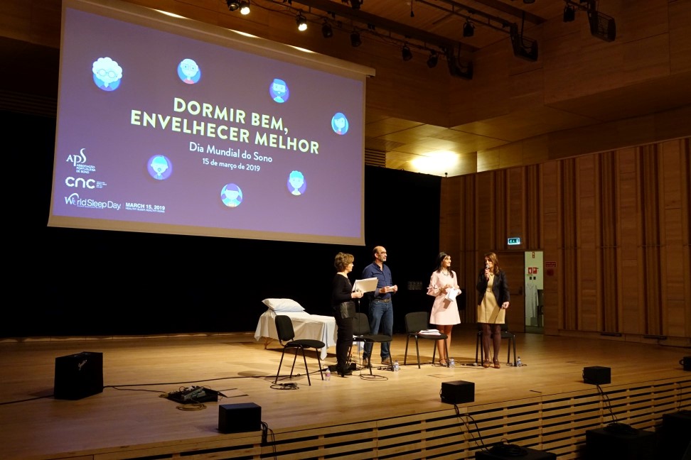 A tarde prosseguiu com uma conversa entre especialistas sobre “O Sono ao Longo da Vida”, uma performance teatral realizada pela companhia Marionet/Laboratório do Desconhecimento e intitulada “A Máquina dos Sonhos, e um debate sobre a “Religião e o Sono” e sobre a forma como os Livros das Grandes Religiões Proféticas (a Tora do Judaísmo, a Bíblia do Cristianismo e o Alcorão do Islamismo) sublinham a importância de dormir. O evento foi conduzido por Ana Rita Álvaro, investigadora do CNC, e Maria Helena Estêvão, pediatra e membro da direção do APS.