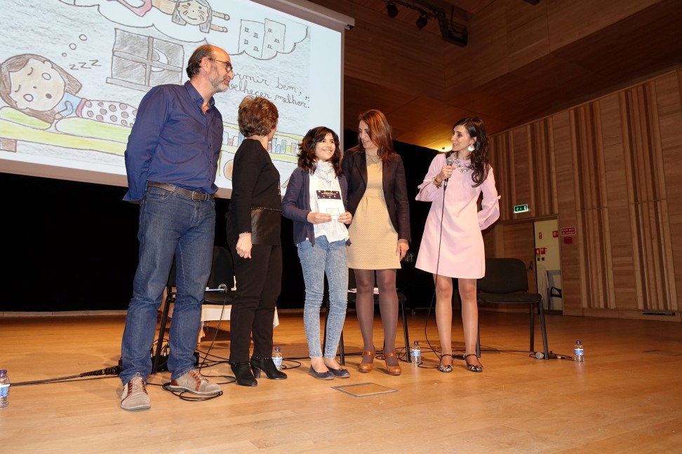 Regina Bento procedeu, de seguida, à entrega dos prémios do concurso de desenho “Dormir Bem, Envelhecer Melhor”, promovido pela APS e pelo CNC. A autarca entregou as distinções, juntamente com o diretor da Escola Secundária Quinta das Flores, Lúcio Pratas, aos quatro vencedores do concurso, nas categorias de 1º, 2º e 3º ciclo e ensino secundário, respetivamente Gustavo Maia da Silva, José Maria Guedes, Matilde Correia e Tiago Gonçalves. Os vencedores viram os seus desenhos transformados em postais.