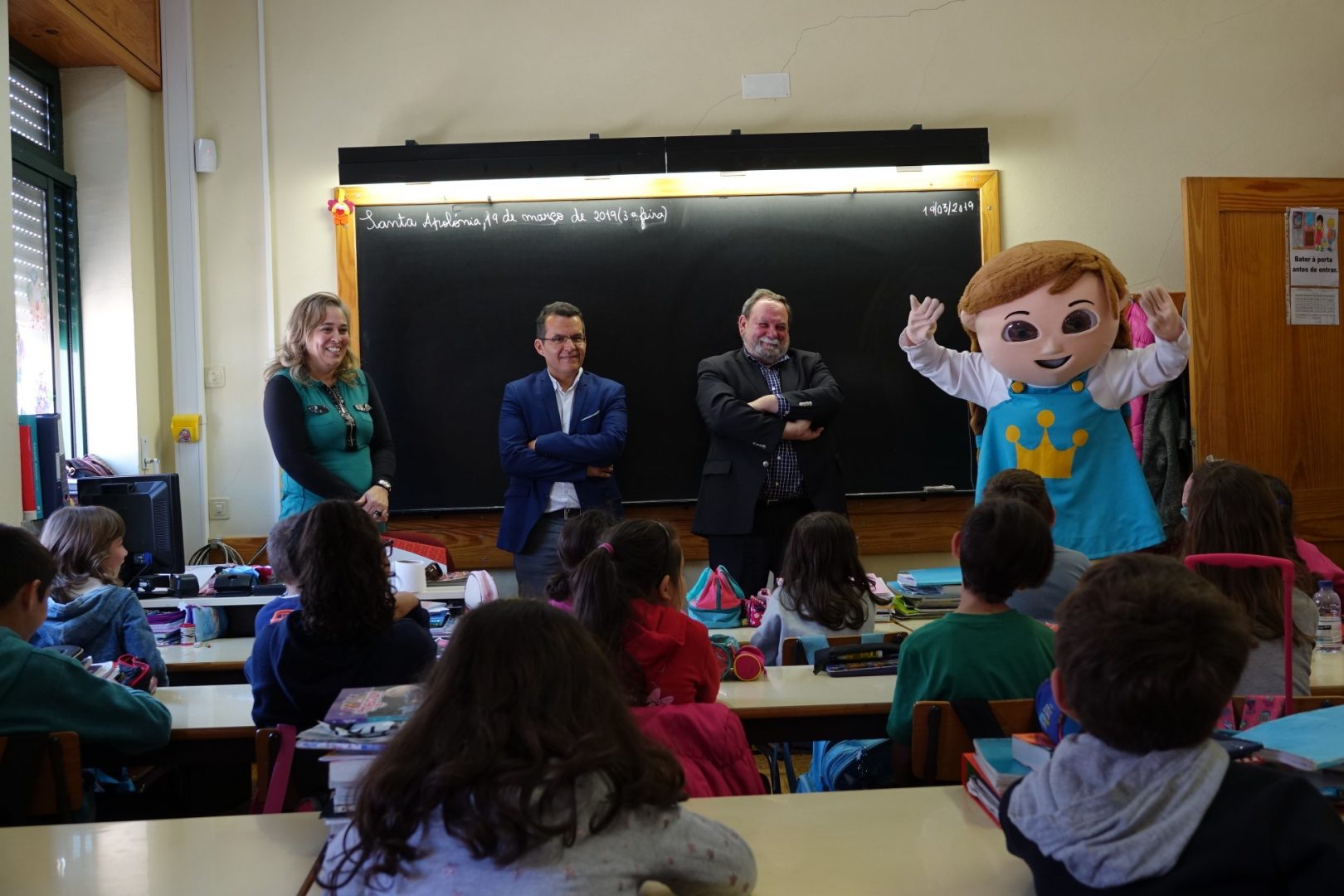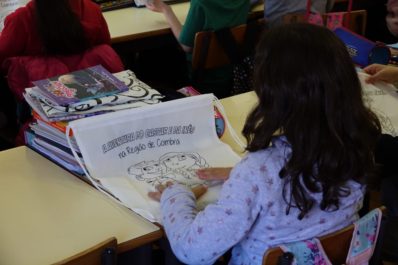 A manhã de ontem foi diferente para os alunos da turma 5 do 3º ano da escola EB Rainha Santa Isabel. O vereador da Educação da CM de Coimbra aproveitou para conversar com os alunos sobre a história da cidade de Coimbra até que a mascote Inês entrou sala a dentro. O tema da conversa a partir daí foi, naturalmente, o empreendedorismo e a mascote Inês distribuiu kits por todos os alunos.