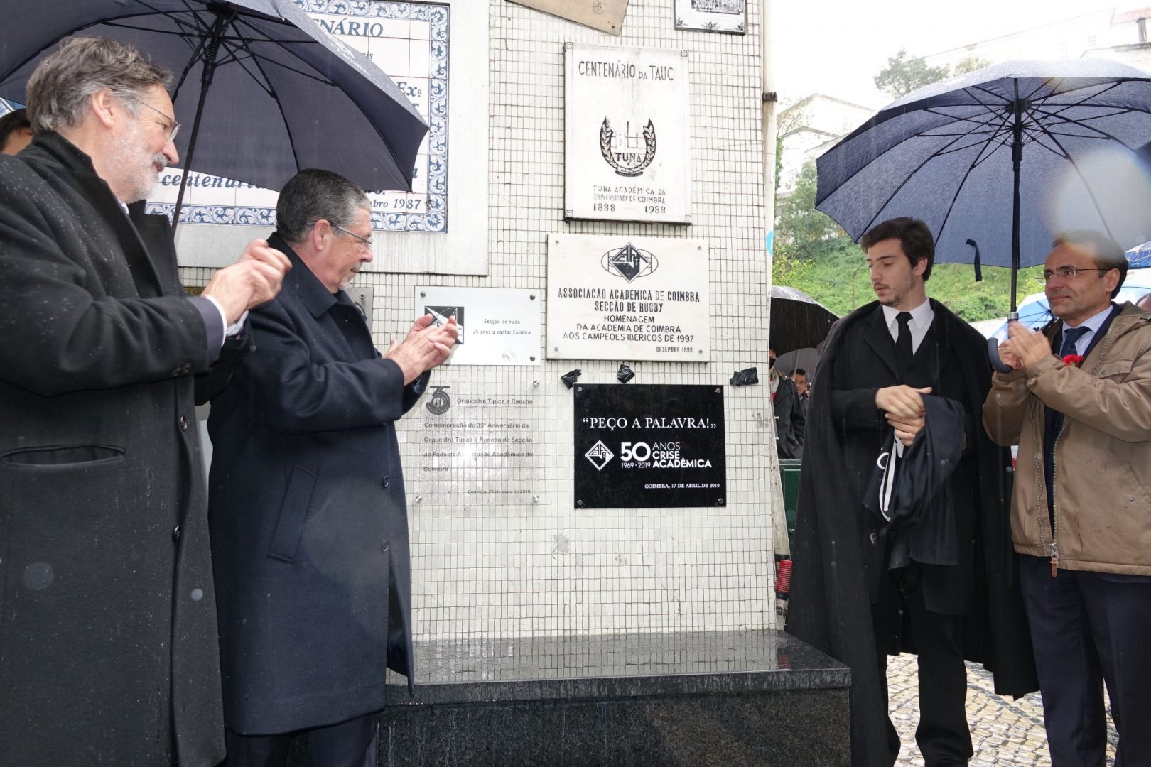 “O sítio é o indicado, pois foi aqui, nas Escadas Monumentais, que houve a expressão visível da repressão logo a seguir ao 17 de abril de 1969. Aqui foi o sítio em que a academia se deu à cidade e percebeu que tinha o carinho da cidade, dos conimbricenses, e esse foi um passo marcante”, acrescentou ainda Manuel Machado, agradecendo a Carlos Ramos por ter aceite o desafio e cumprido com eficácia a sua missão, elogiando ainda o facto do escultor ter conseguido tão bem “passar a mensagem pretendida”. Uma mensagem para “memória futura, de que todos têm lugar na cidade de Coimbra”.