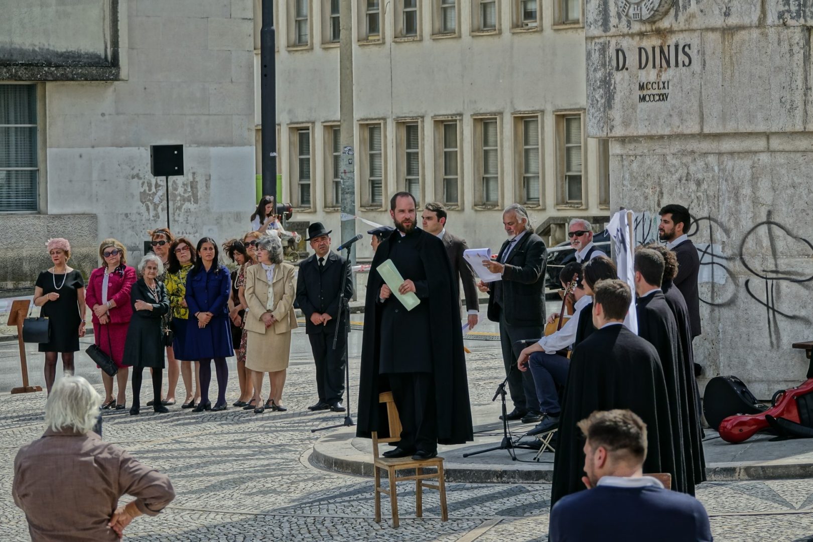 Na iniciativa, promovida pela Câmara Municipal de Coimbra e encenada pela Viv’Arte, foram retratados alguns momentos históricos de abril de 1969, a que assistiram, entre muitos curiosos, os vereadores da CM Coimbra, Carlos Cidade e Carina Gomes, o presidente da Associação Académica de Coimbra, Daniel Azenha, e o vice-reitor da Universidade de Coimbra, Alfredo Dias.