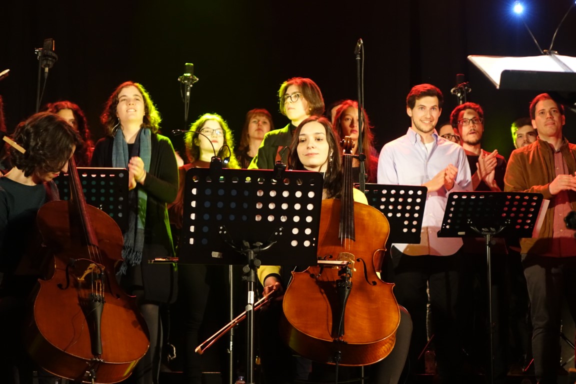 Os 53 músicos que ontem subiram ao palco vêm de diferentes contextos e experiências. Há membros do Coro Misto da Universidade de Coimbra, da Tuna Académica, da Filarmónica de Taveiro e do grupo “Há Música na Aldeia”, de Miranda do Corvo, para além de jovens que estudam jazz, que têm formação clássica ou que tocam em bandas de rock da região.
