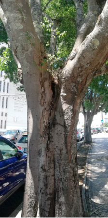 Comunica-se que na sequência de uma intervenção regular de manutenção de árvores na Calçada Martim de Freitas, para levantamento e aclaramento das copas, e coabitação com iluminação publica, verificou-se a existência de um exemplar (celtis australis) em risco iminente de colapso, cuja urgência no seu abate foi considerada máxima pelos serviços municipais, como garante da segurança de pessoas e bens.