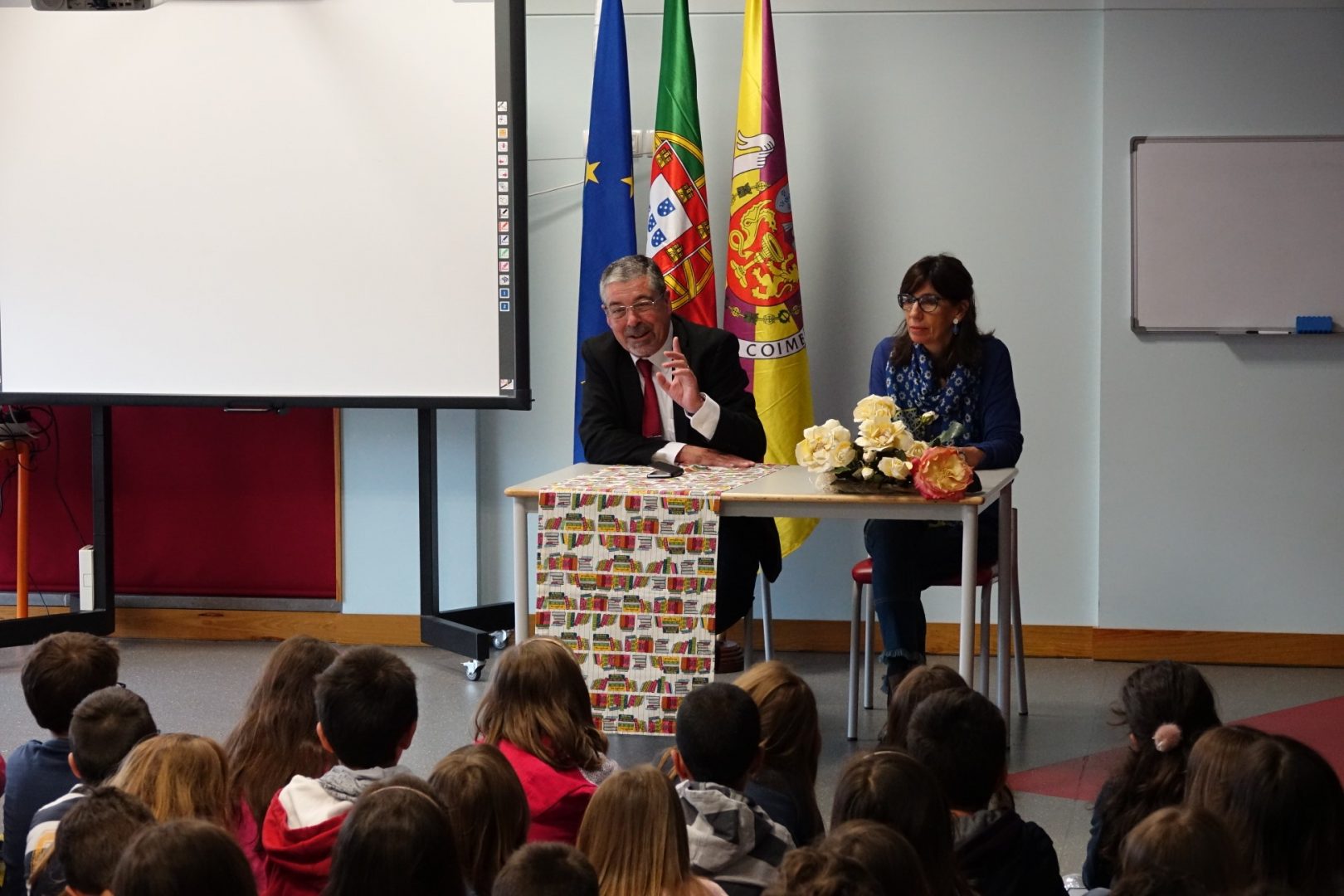 O presidente da CM de Coimbra foi desafiado pelos professores do Centro Escolar Solum Sul a partilhar algumas estórias e conhecimento sobre a história e património de Coimbra. E assim aconteceu, esta manhã, na biblioteca do Centro Escolar.