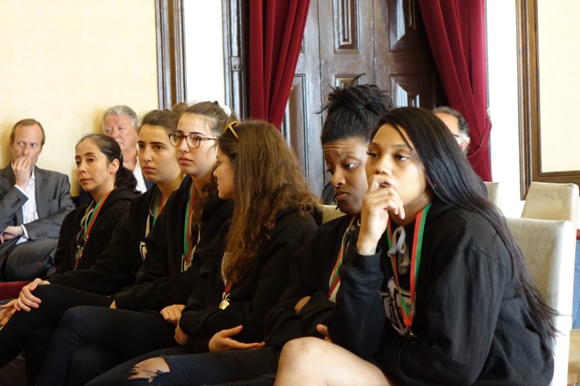 Vencedoras do campeonato feminino de basquetebol recebidas no Salão Nobre